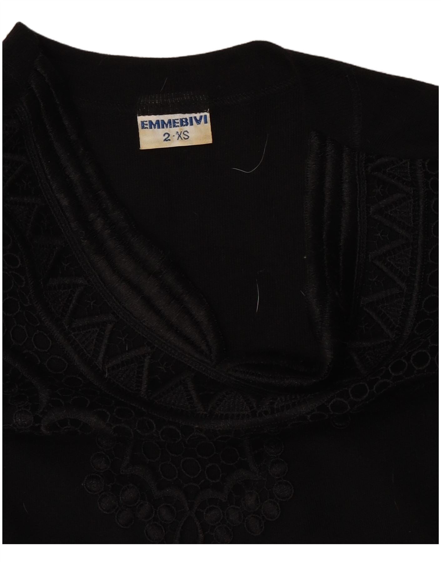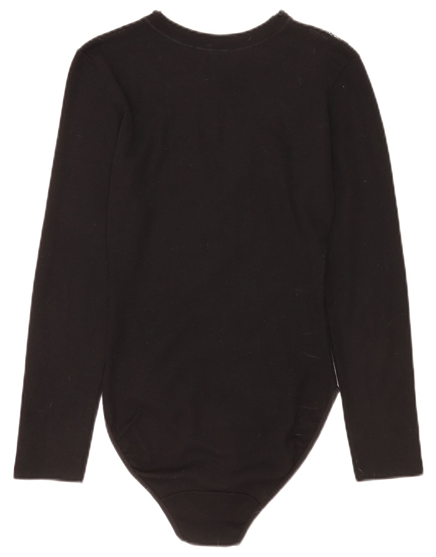 Body vintage pentru femei cu mânecă lungă UK 2 2XS Lână virgină neagră