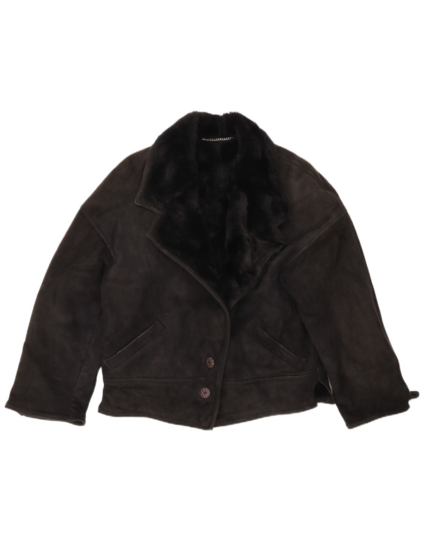 Jachetă din shearling pentru femei VINTAGE cu ajustare largi IT 44 Medium Black Shearling