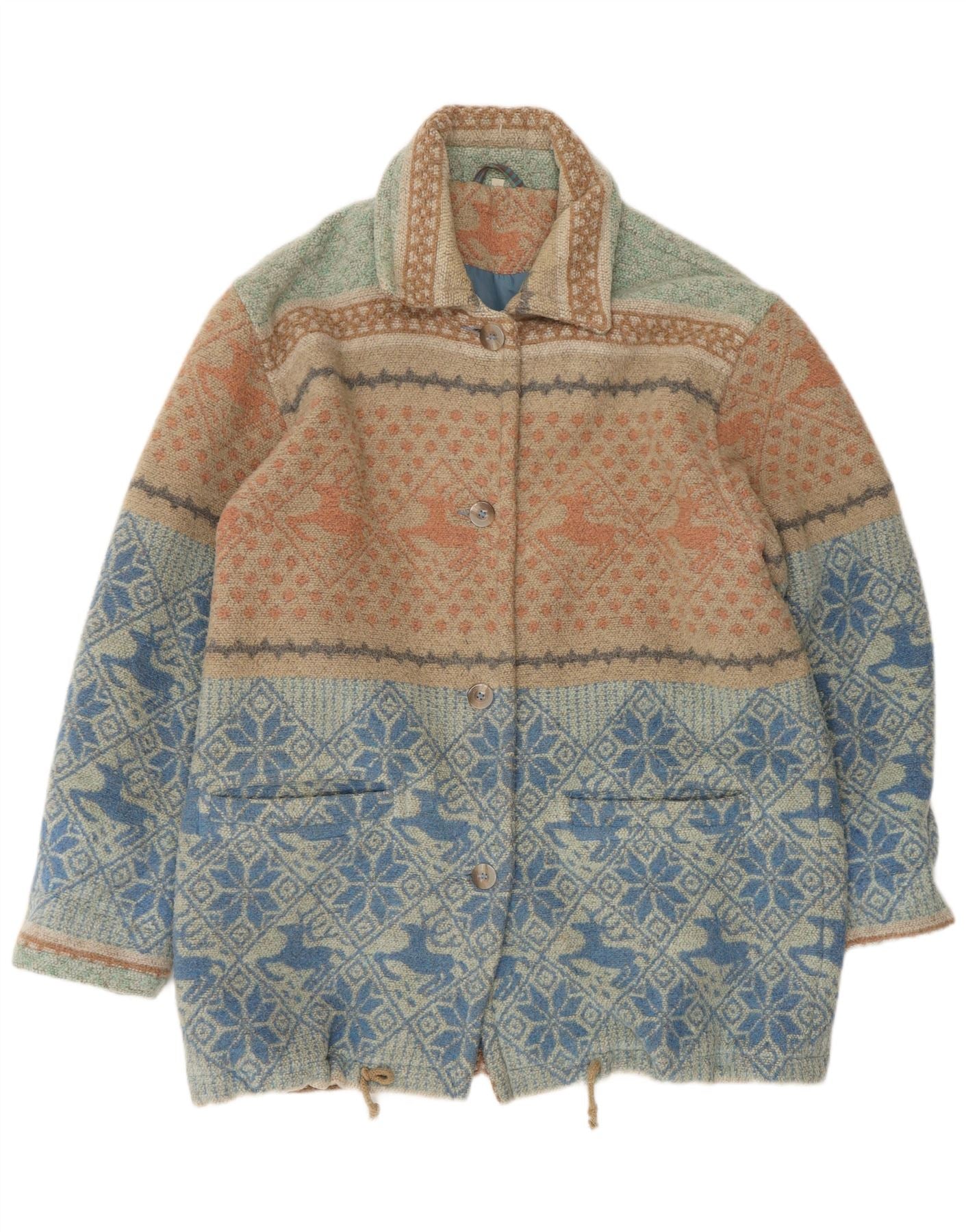VINTAGE Womens 2 Button Blazer Jacket UK 18 XL Gold Animal Print Acetate