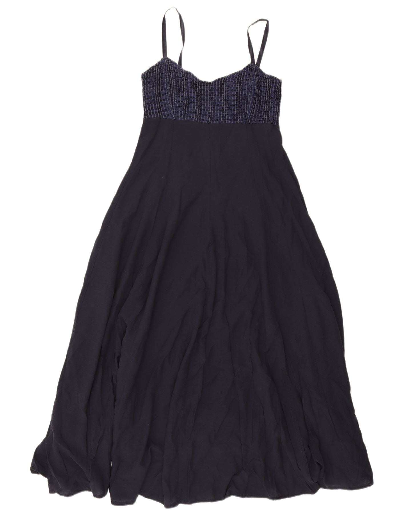 Rochie de soare Maxi Vintage pentru femei UK 12 Medium Bleumarin Viscoză