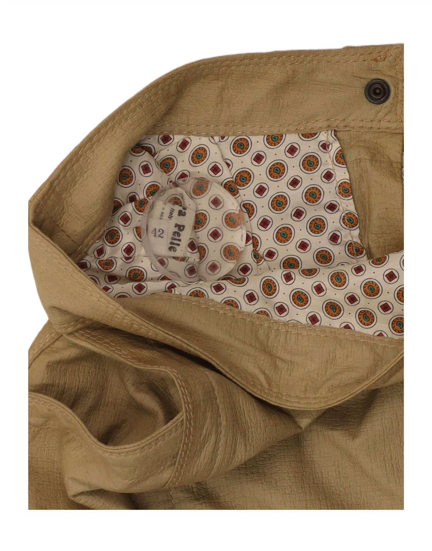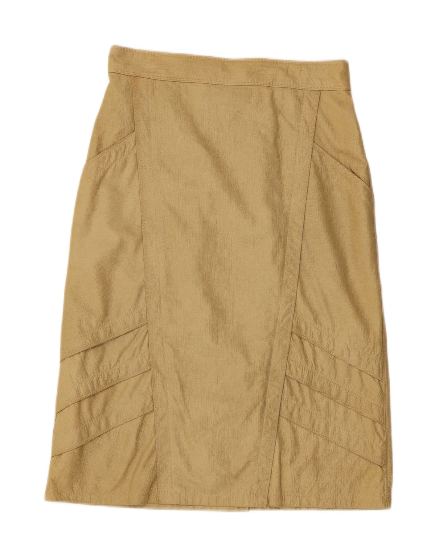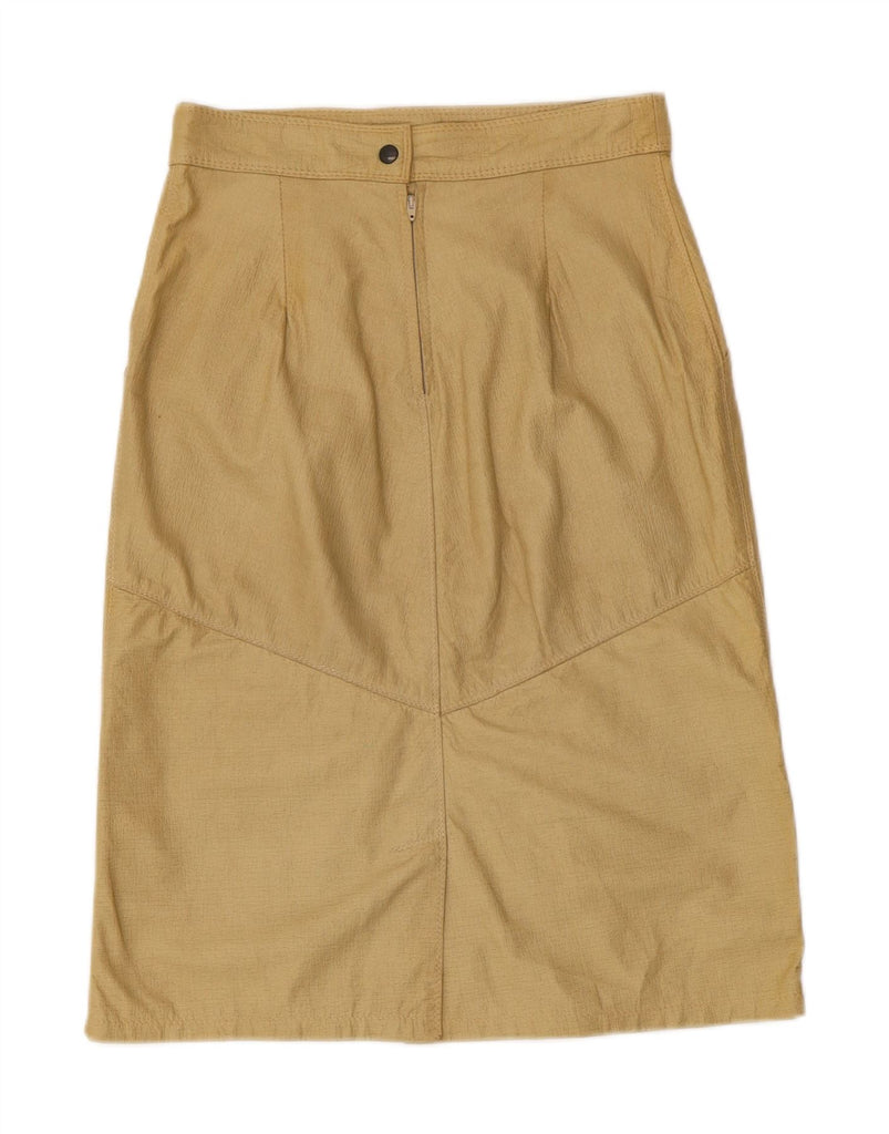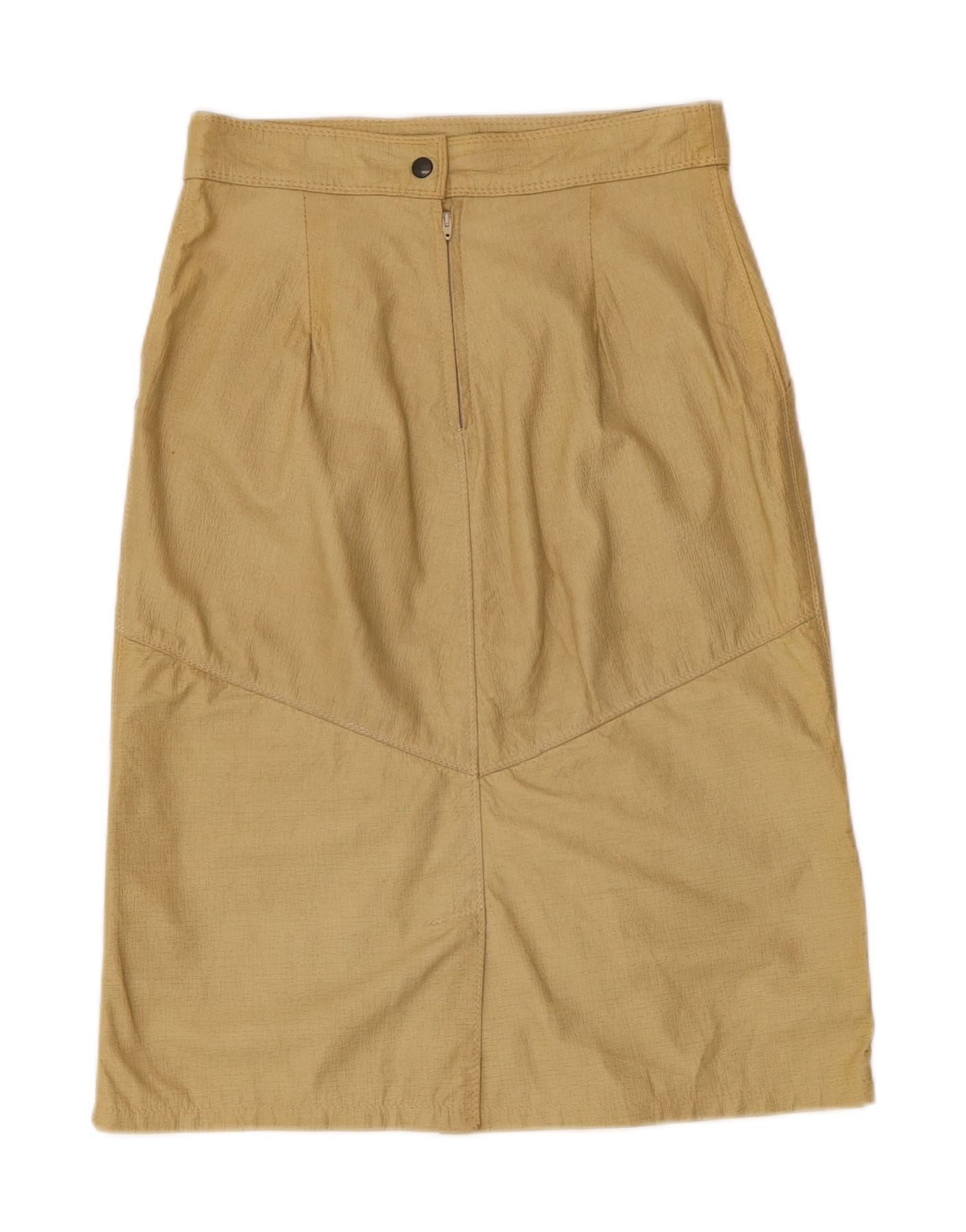 VINTAGE Womens Midi Leather Skirt IT 42 Medium W28 Beige Leather