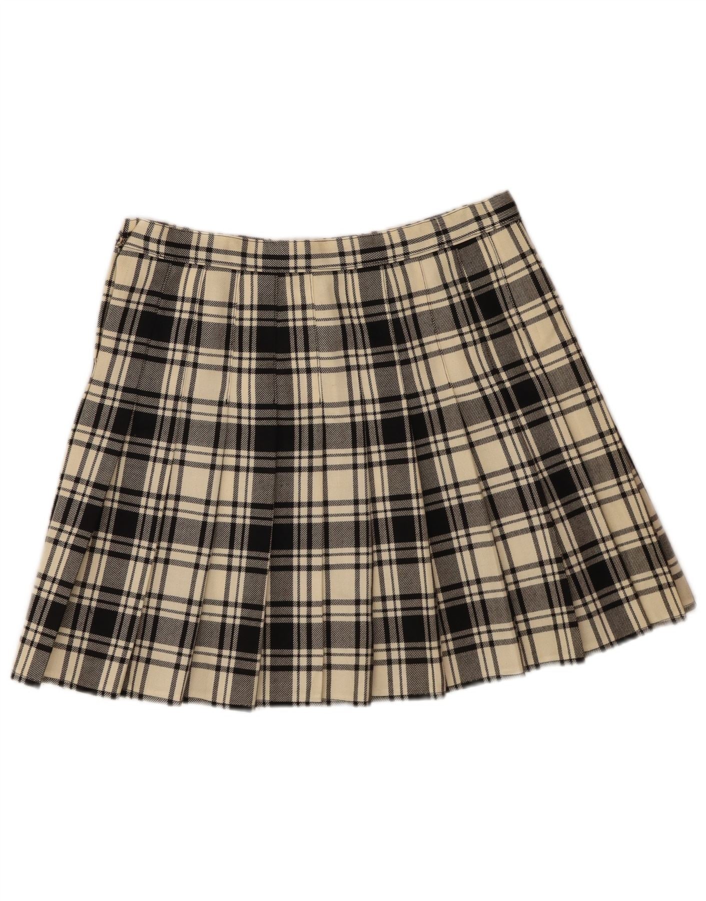 Fustă mini pentru femei VINTAGE W30 Lână virgină carouri alb aproape mediu