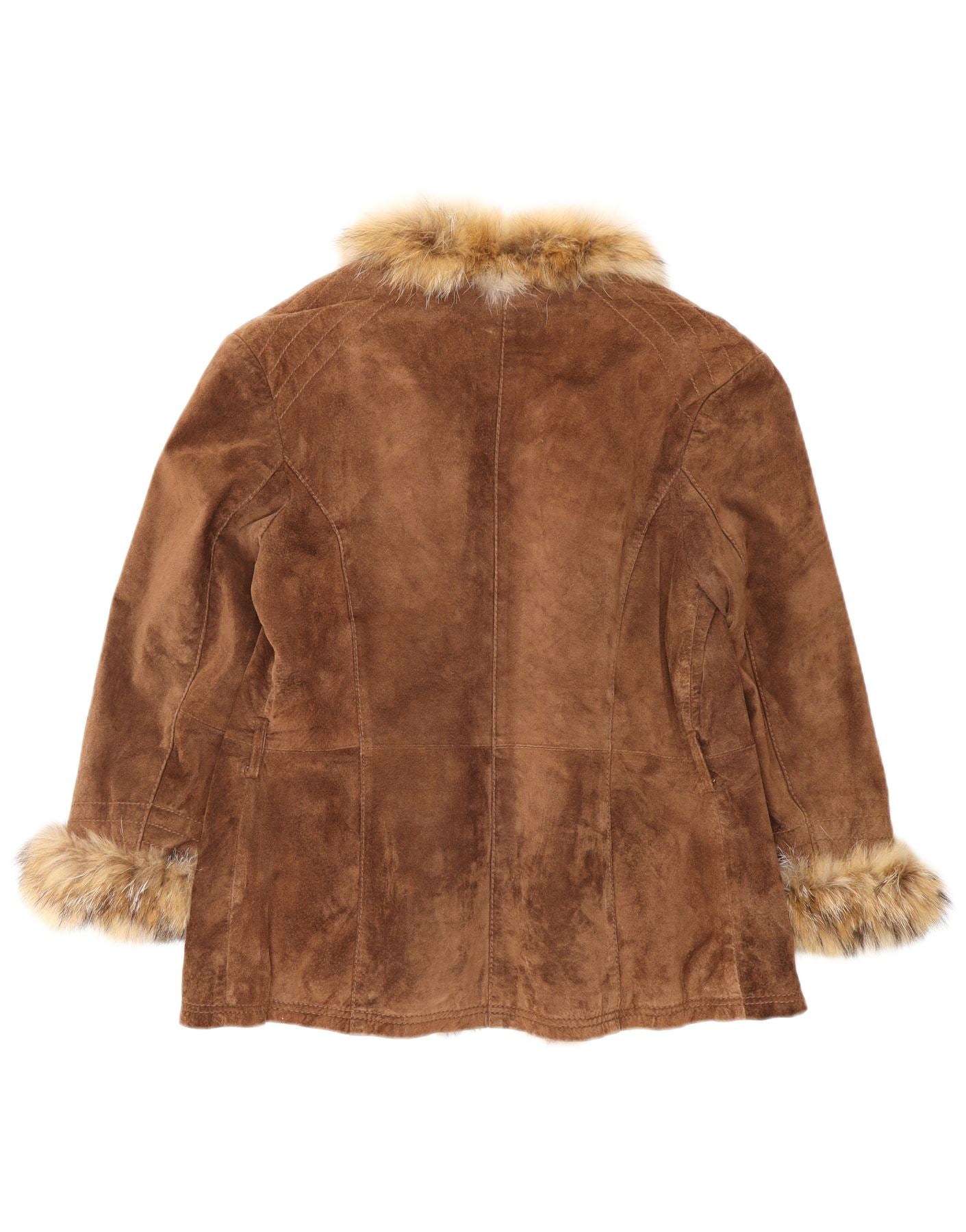 Jachetă de căprioară deschisă pentru femei VINTAGE IT 46 din piele maro mare