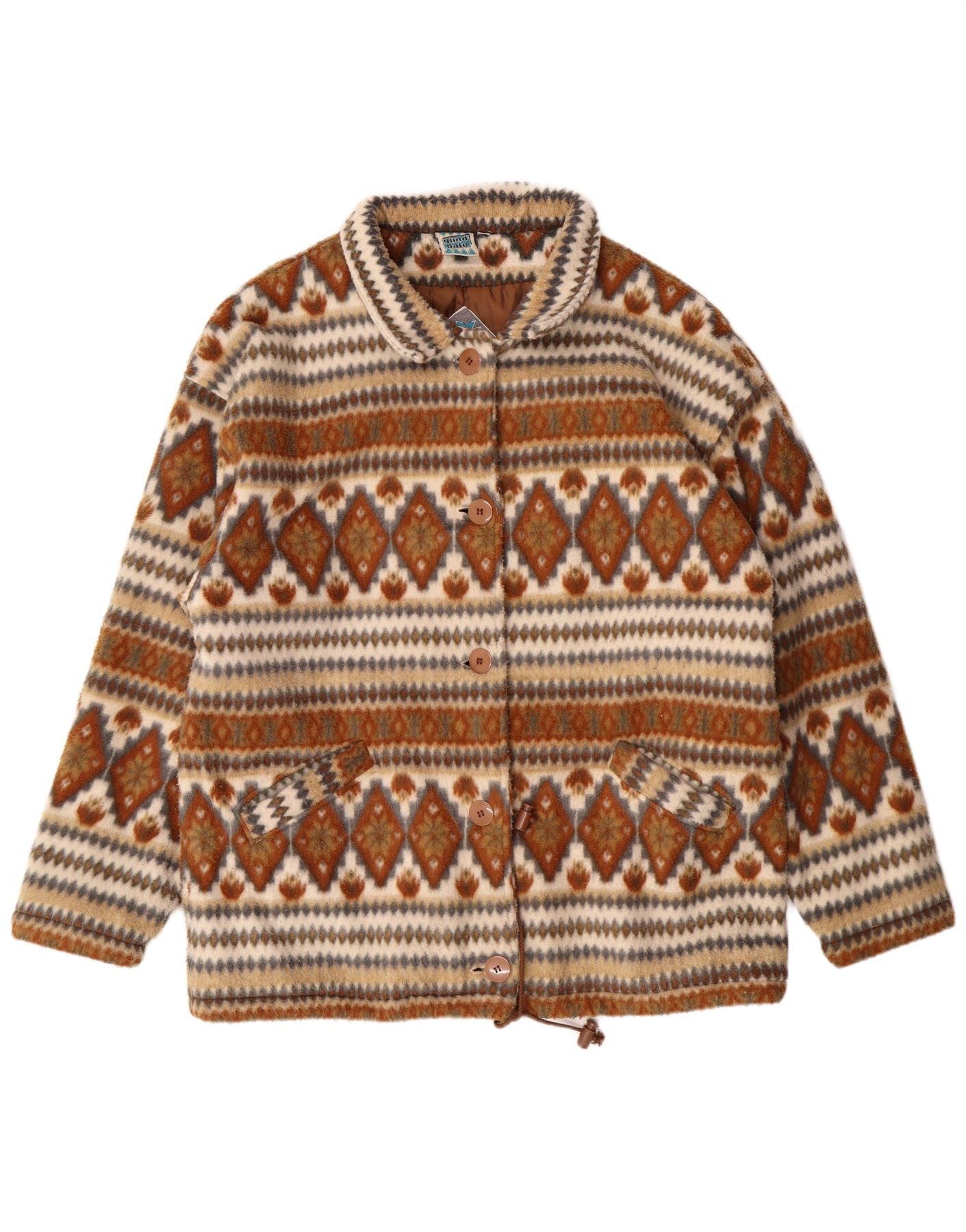 VINTAGE Bomber supradimensionat pentru femei UK 14 Medium Brown Fair Isle