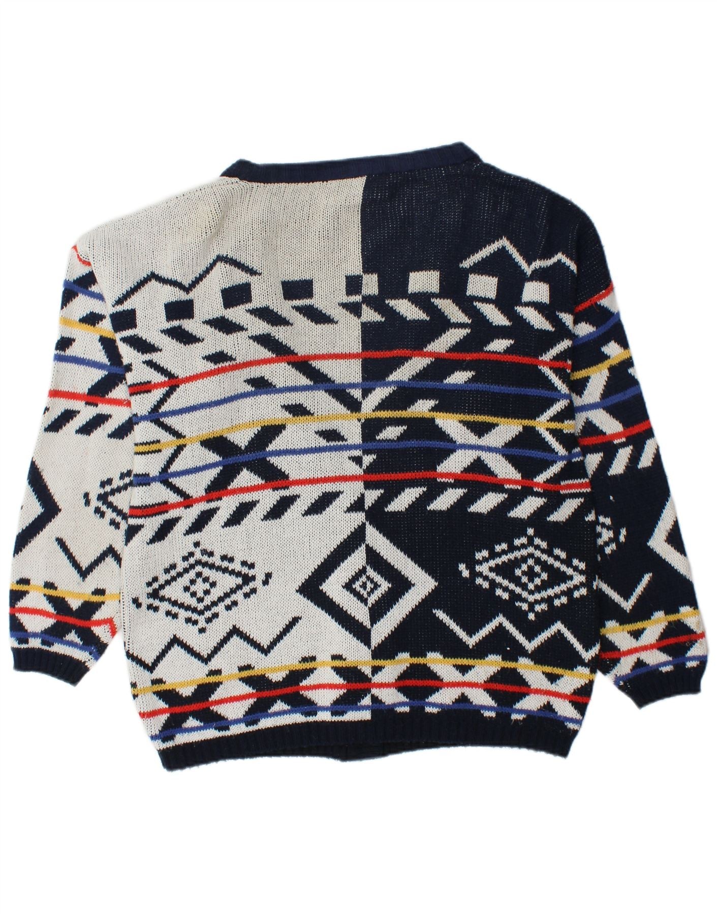 Pulover cardigan supradimensionat pentru femei VINTAGE UK 16 mare bleumarin geometric