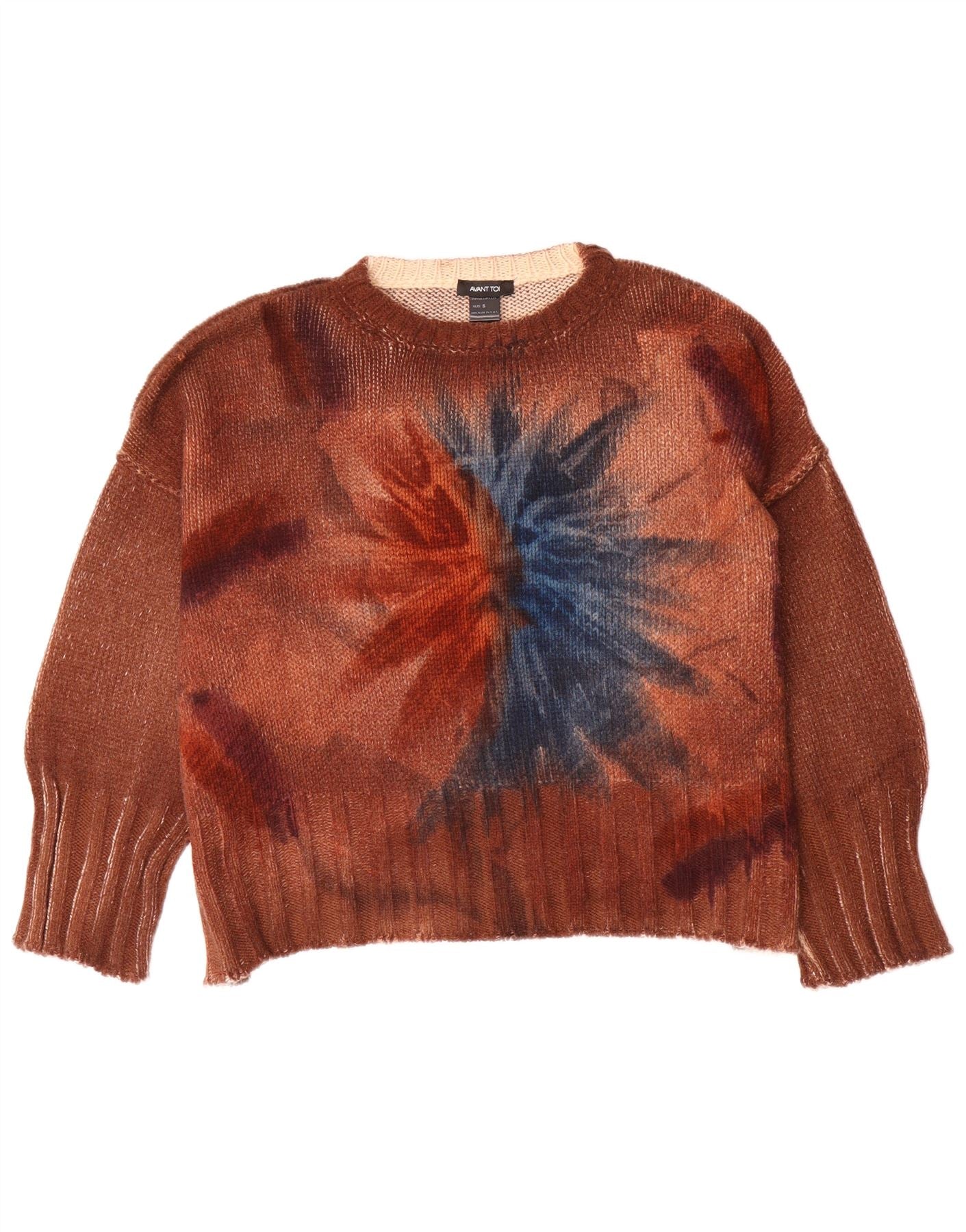 Pulover de damă vintage supradimensionat cu decolteu triplu UK 10 mic maro Tie Dye