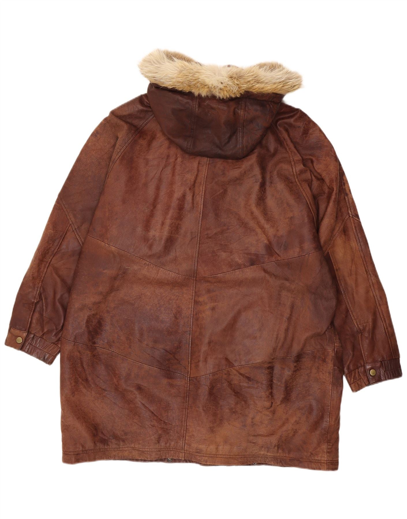 VINTAGE Palton supradimensionat din piele cu glugă pentru femei EU 44 XL din piele maro