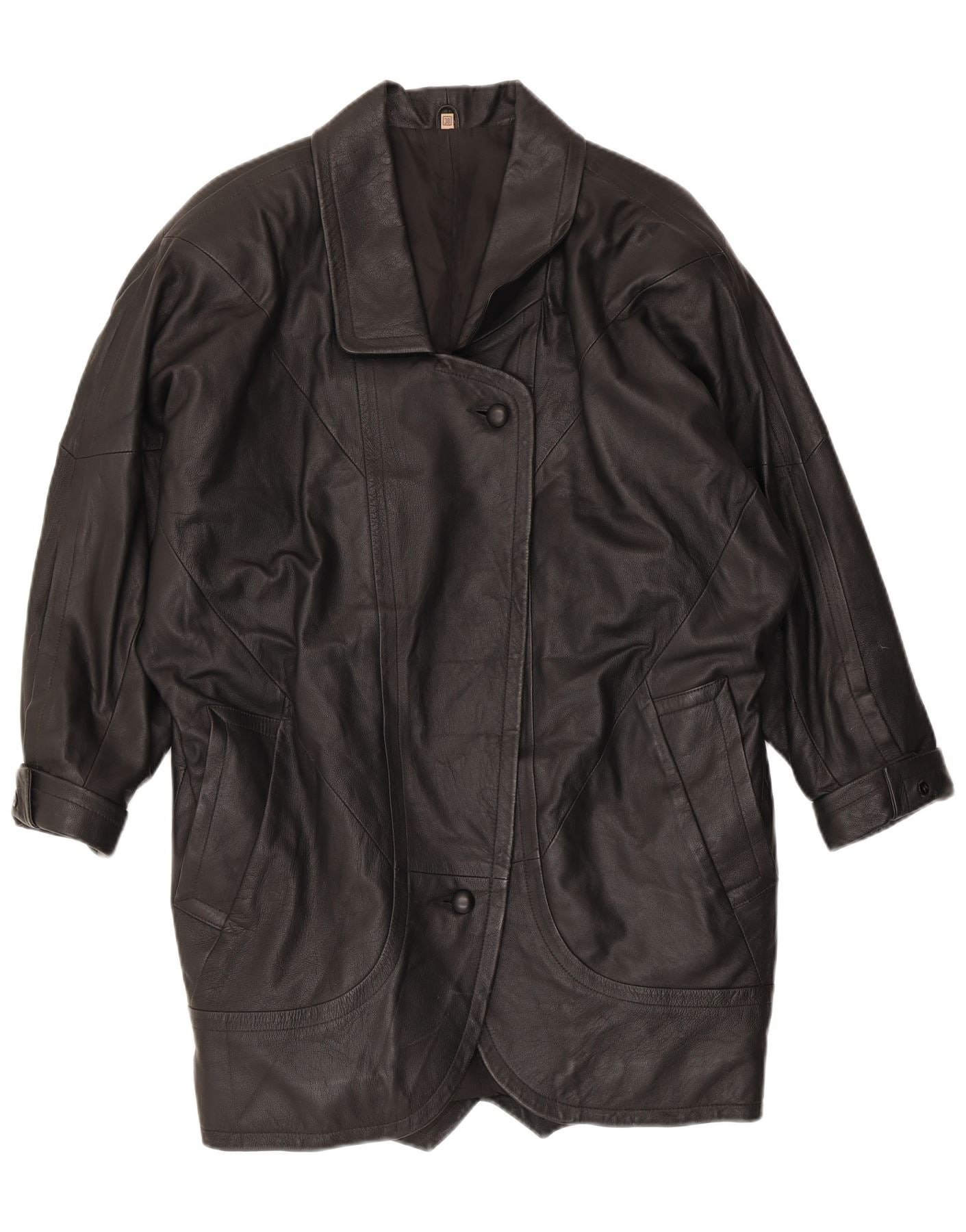 VINTAGE Palton de piele supradimensionat pentru femei EU 38 Piele neagră medie