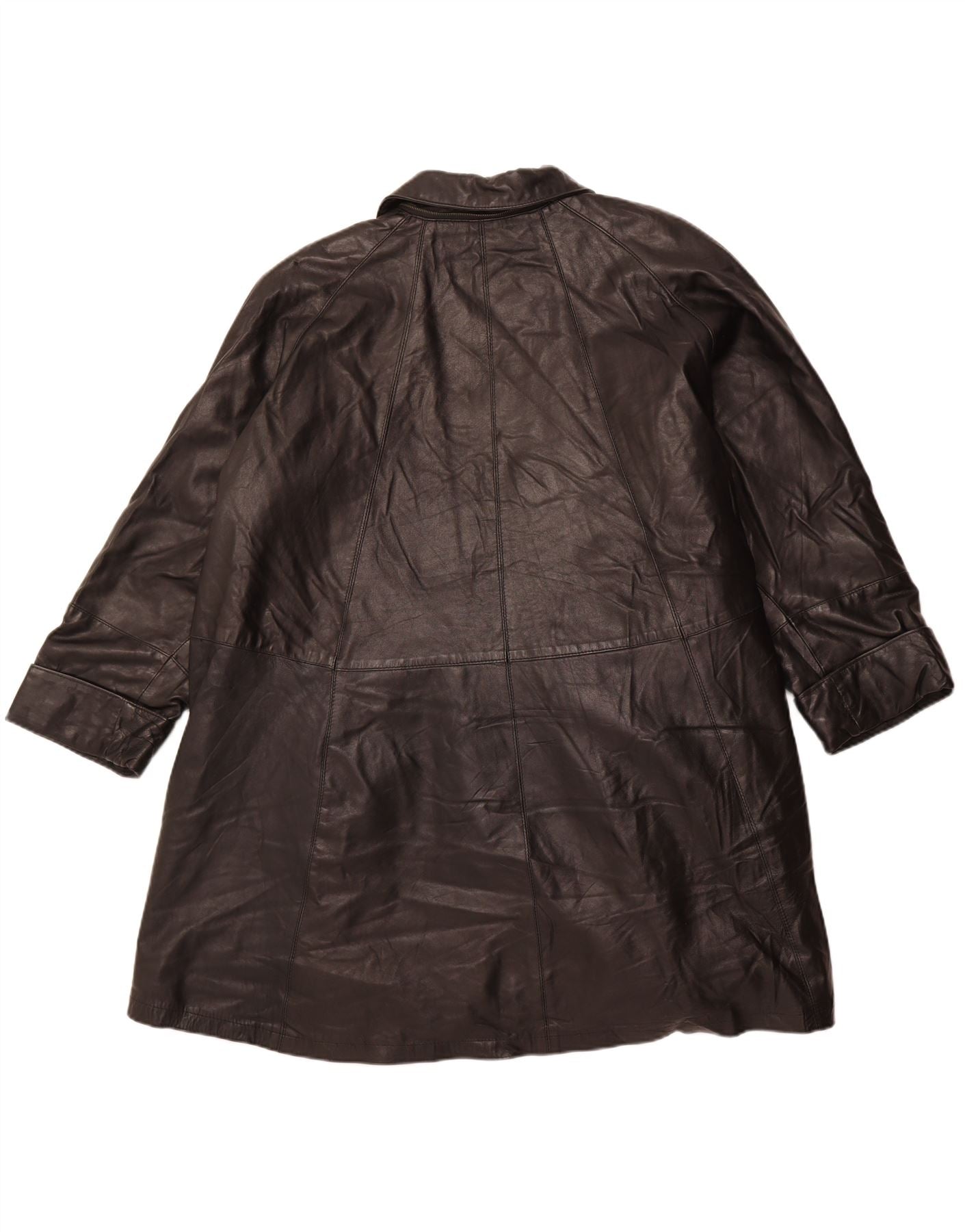 Palton supradimensionat din piele vintage pentru femei IT 56 din piele neagră mare