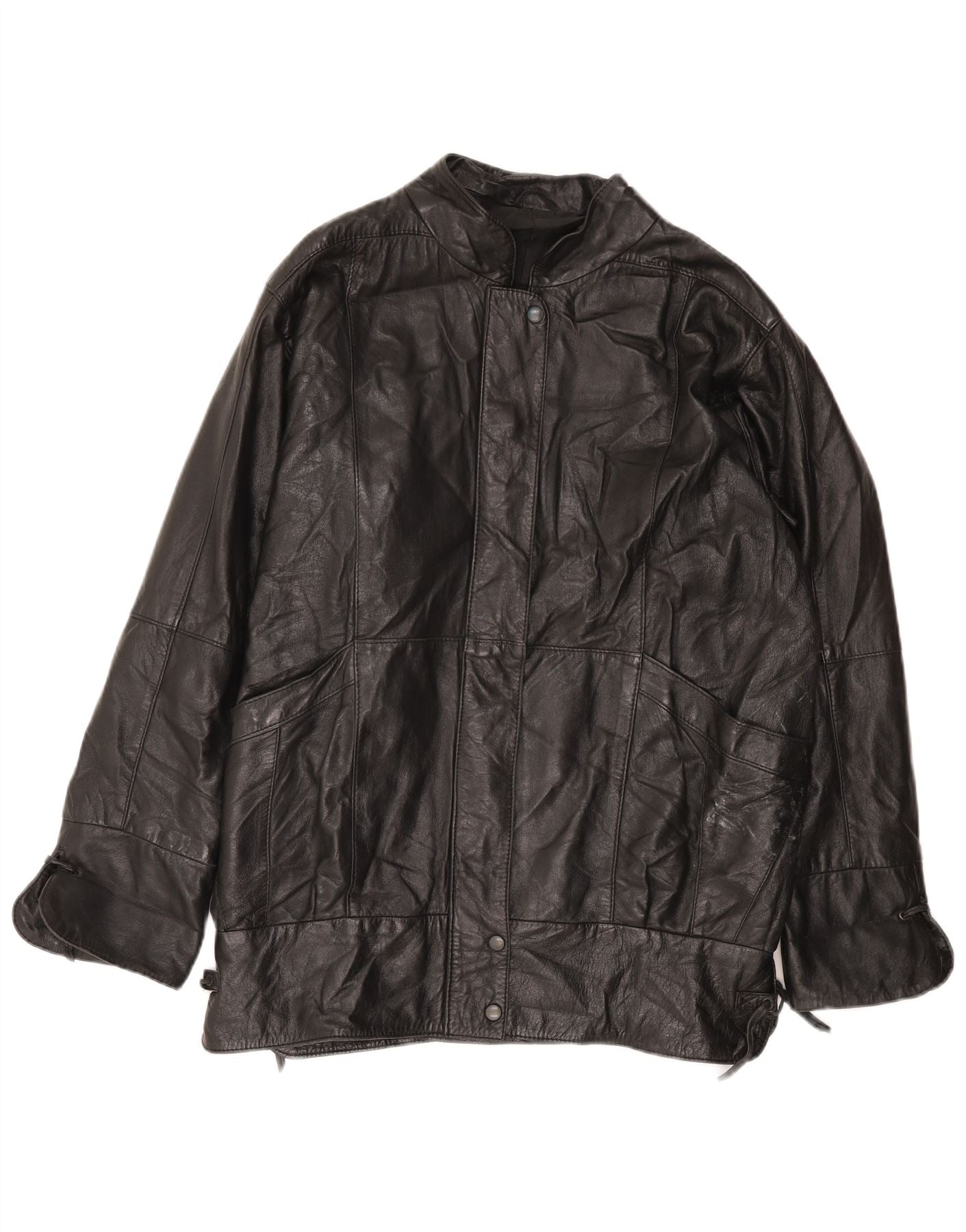 Jachetă de piele supradimensionată vintage pentru femei EU 50 XL neagră