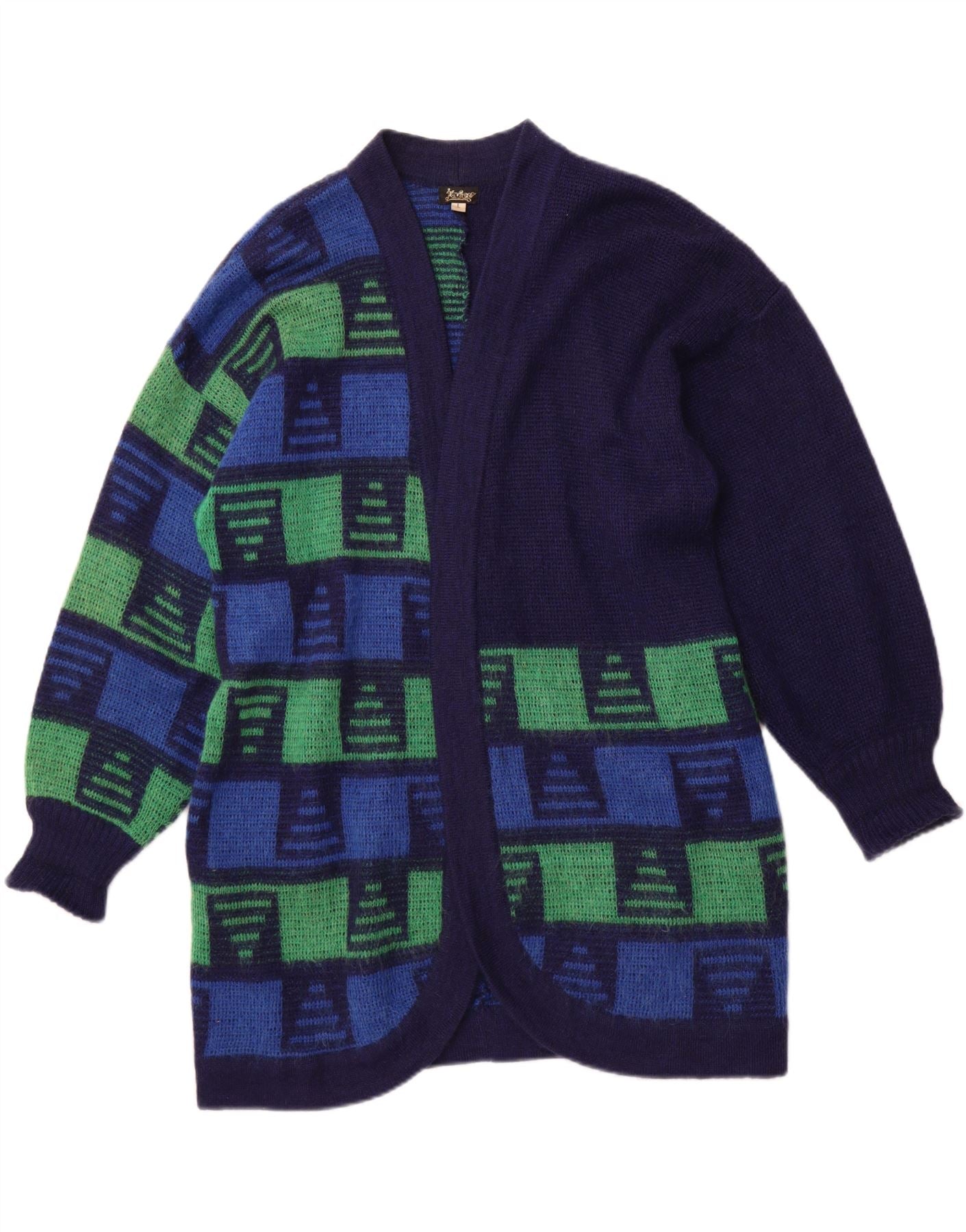 VINTAGE Womens Oversized Longline Cardigan Sweater UK 16 Large Navy Blue
