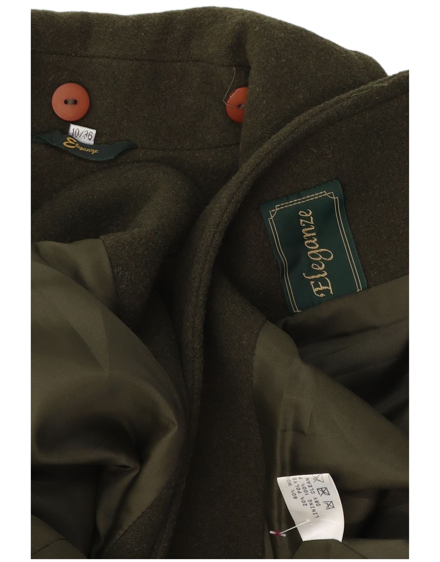 VINTAGE pardesiu supradimensionat pentru femei UK 10 mic din lână verde