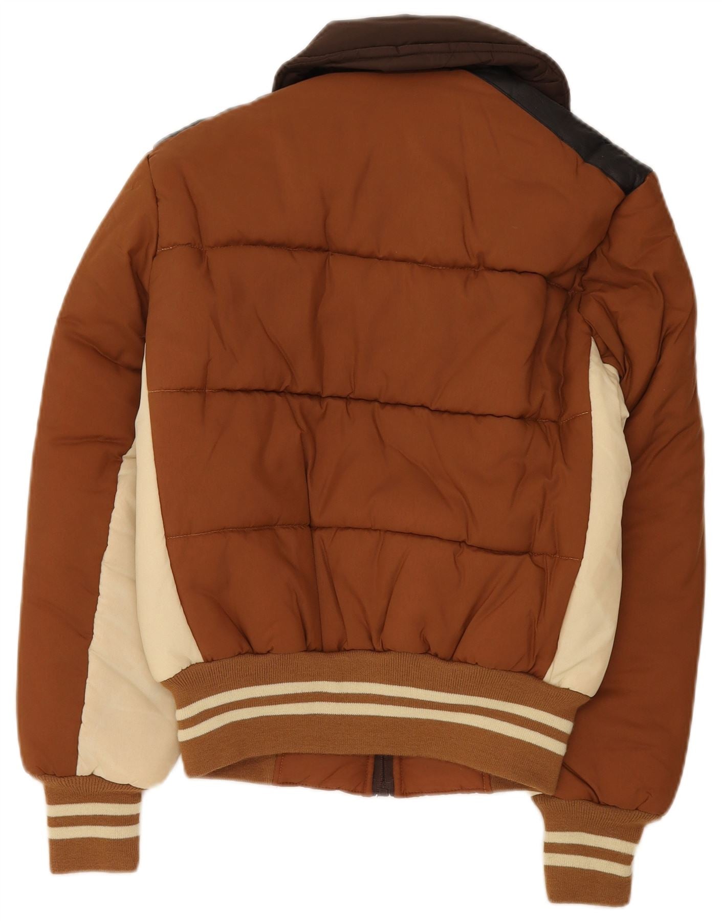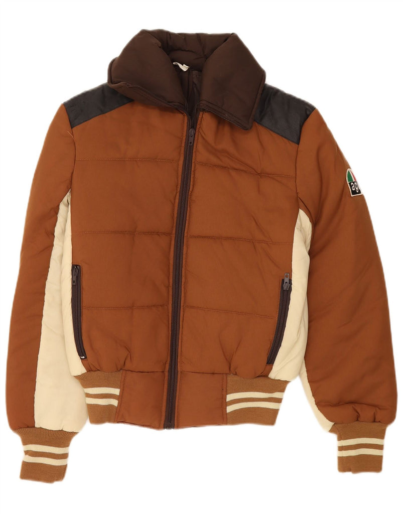 Jachetă căptușită supradimensionată pentru femei VINTAGE UK 10 Small Brown Colorblock