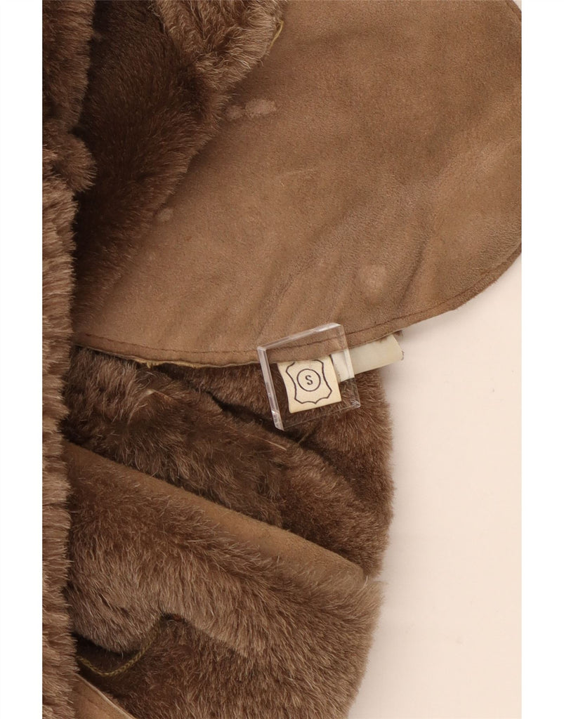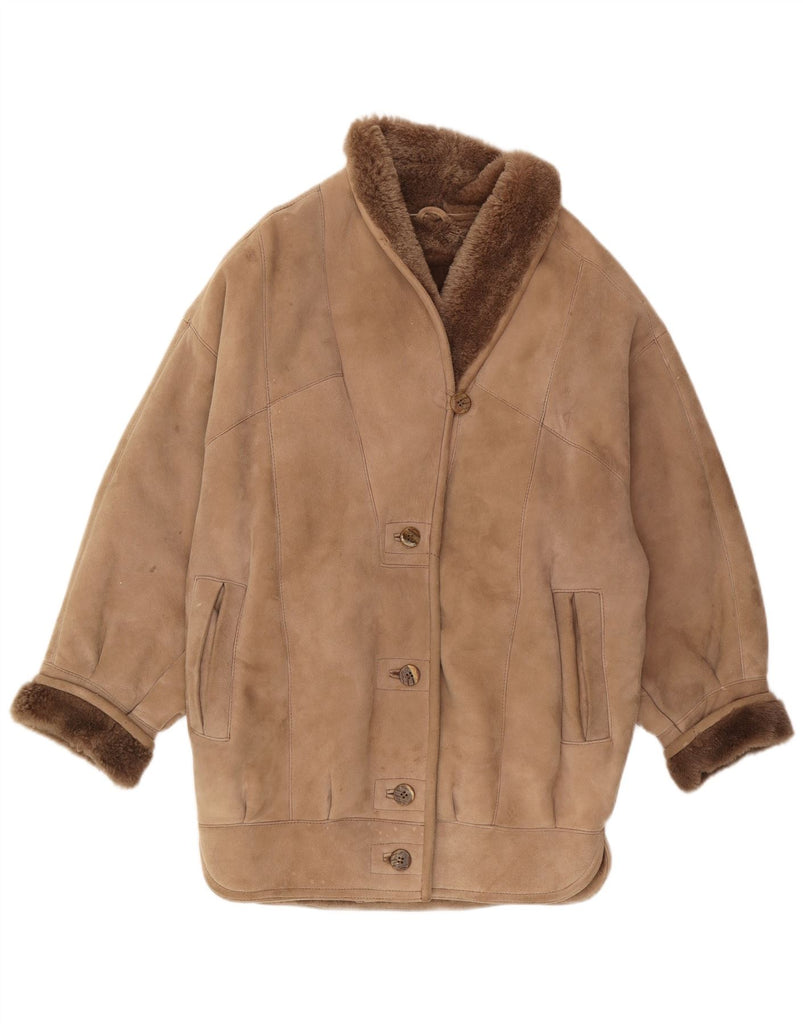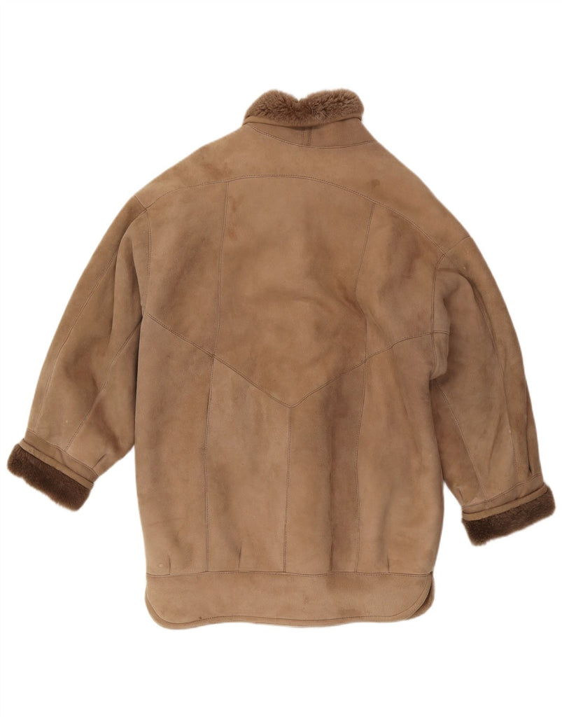 VINTAGE Palton supradimensionat din shearling pentru femei UK 10 Mic din piele bej