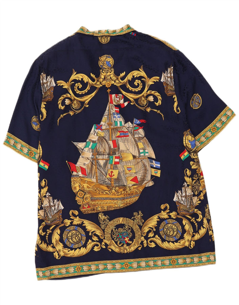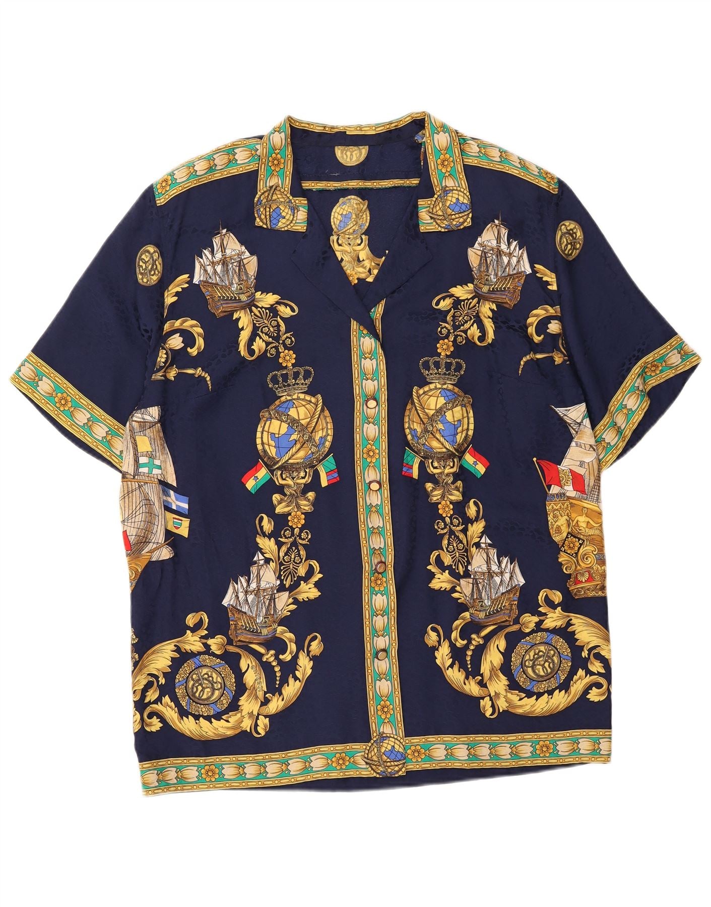 VINTAGE Womens Pullover Shirt Blouse UK 20 2XL Navy Blue Paisley