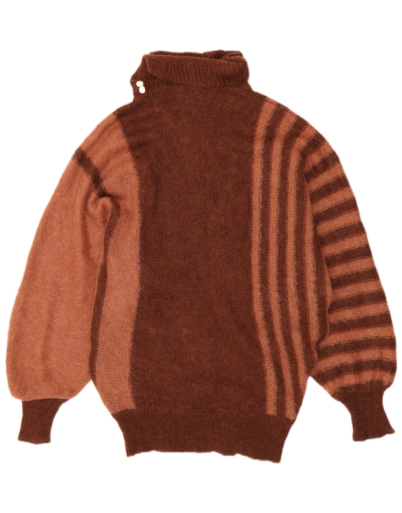 VINTAGE Pulover cu gât rulat pentru femei UK 14 Mohair mare cu dungi maro