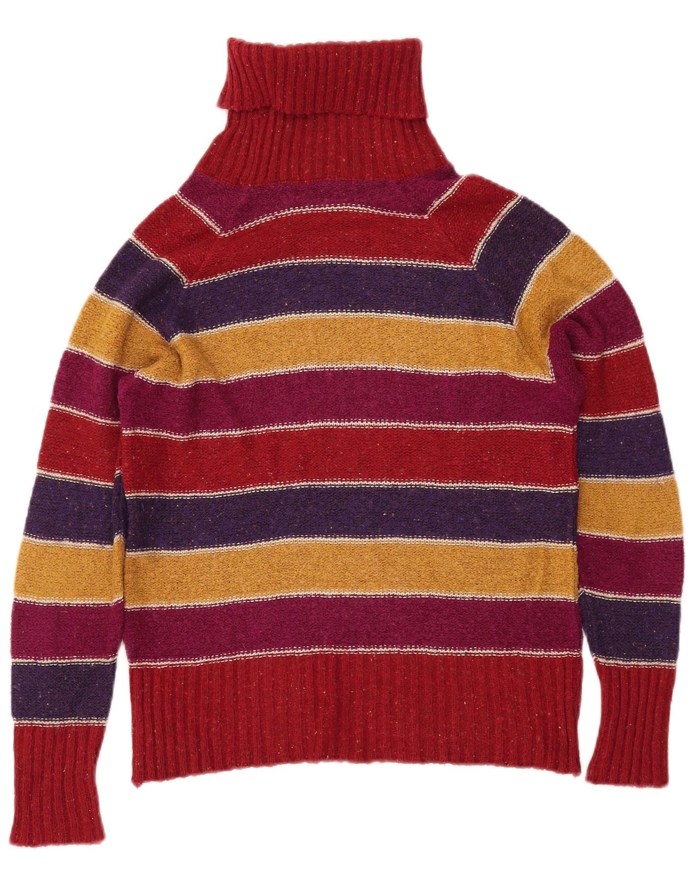 VINTAGE Pulover cu gât rulat pentru femei UK 14 Mediu cu dungi multicolore
