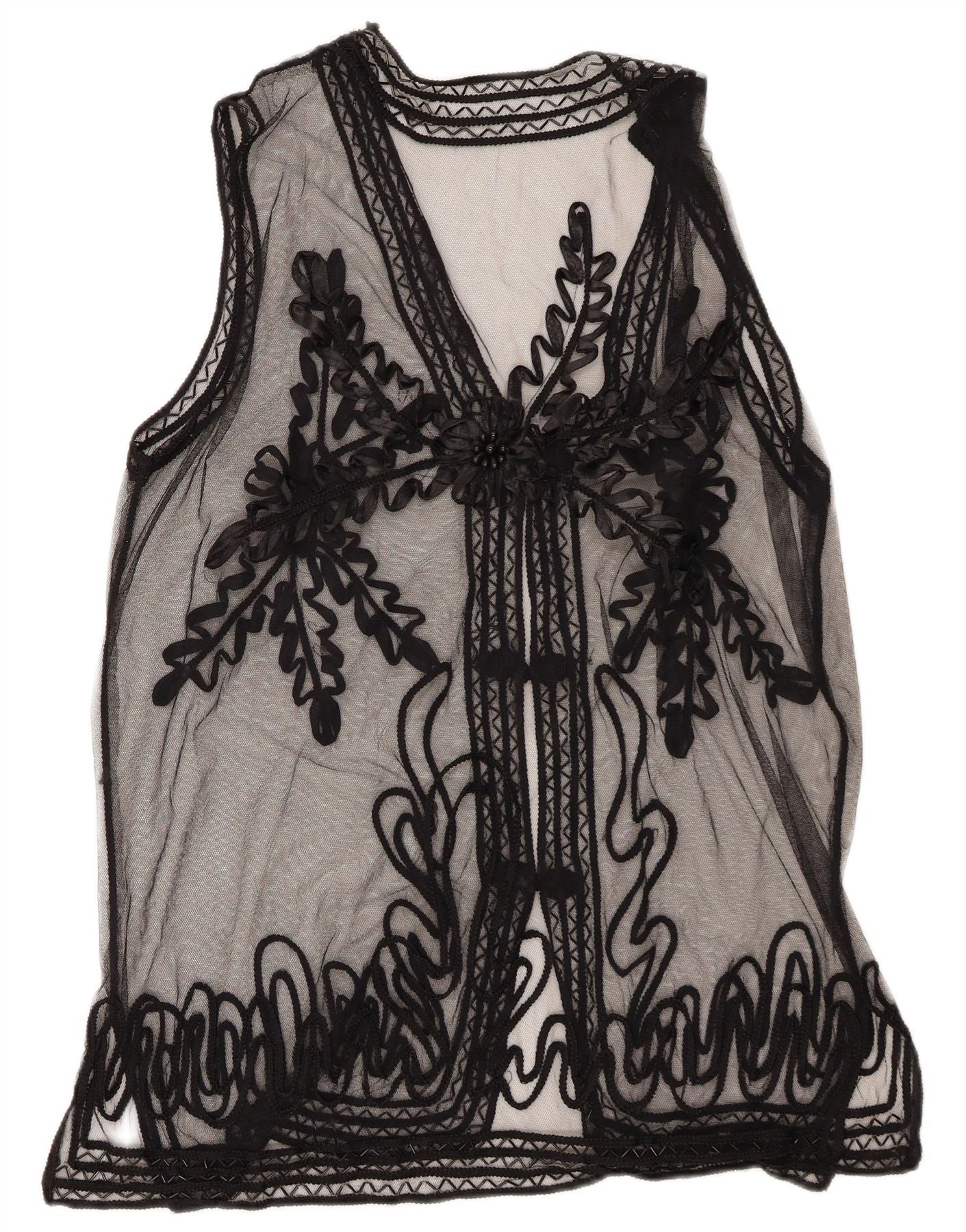 Bluză de cămașă transparentă vintage pentru femei UK 14 Medium Black Floral