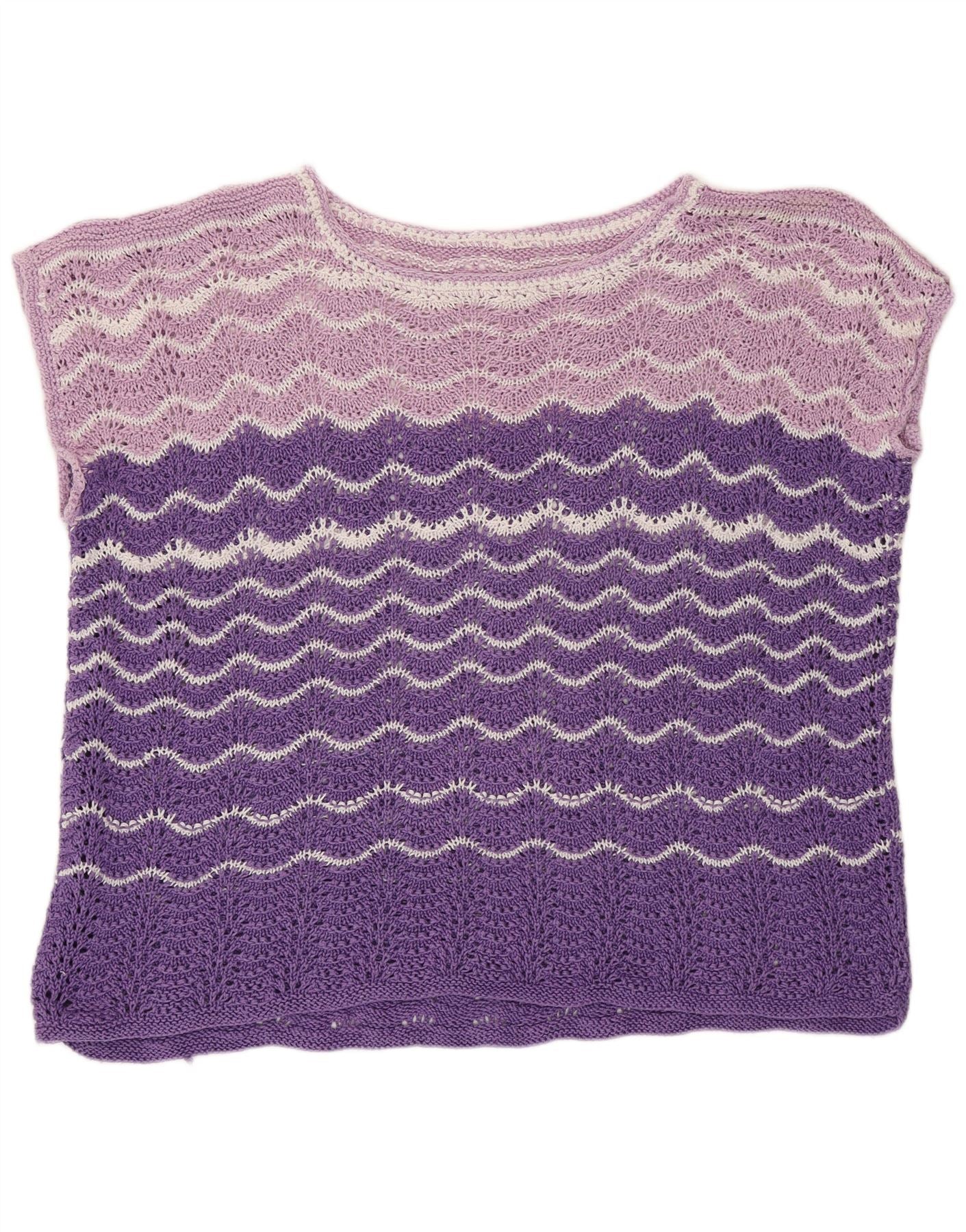 VINTAGE Femei See Through Vest Tank Top UK 20 2XL Purple Colorblock