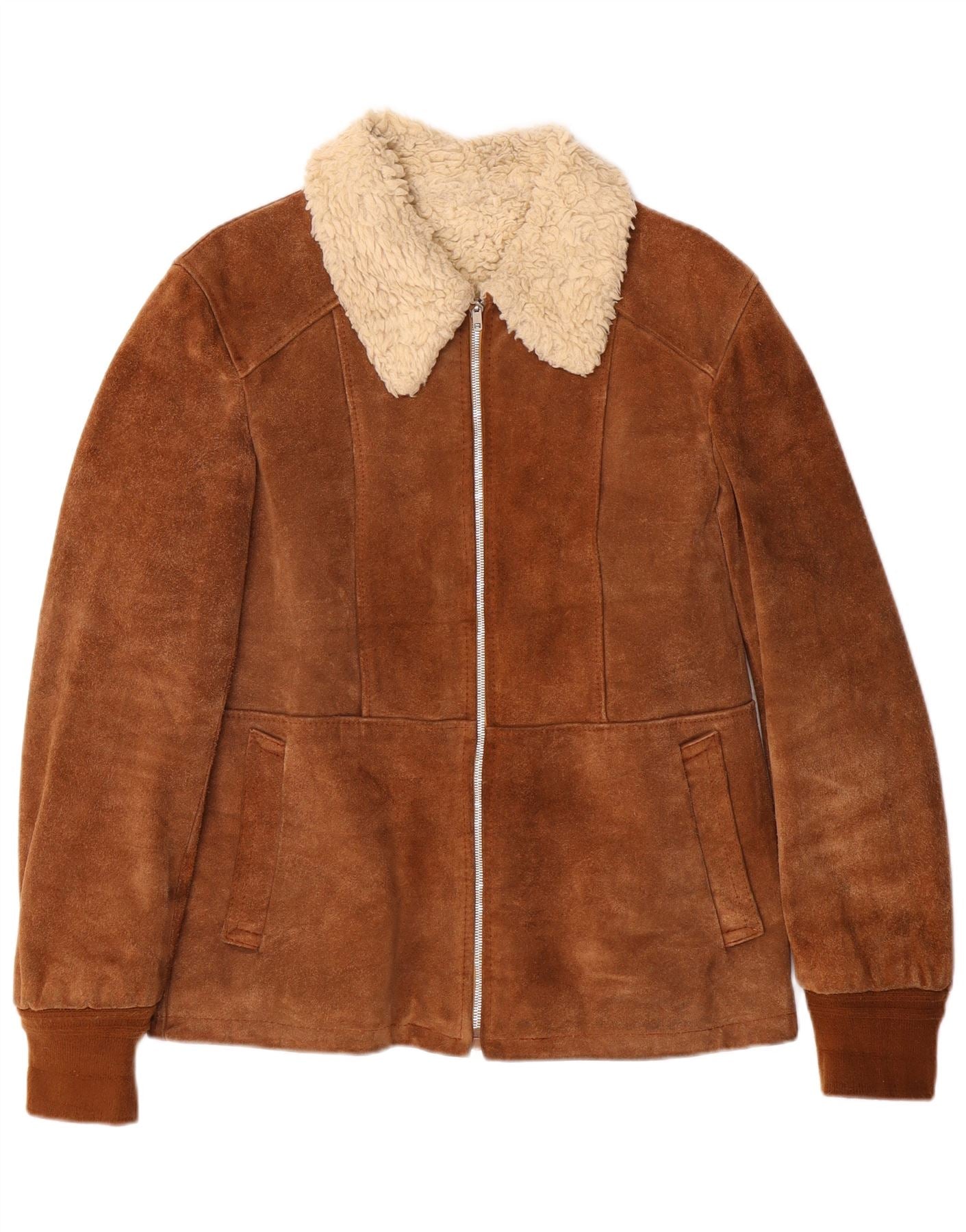 Jachetă din shearling pentru femei VINTAGE IT 46 din piele maro mare