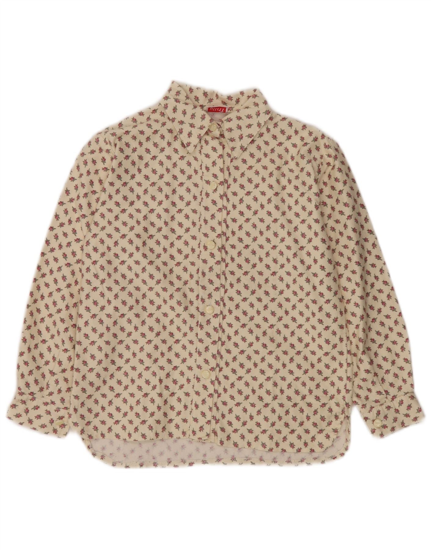 Bluză cămașă pentru femei VINTAGE UK 10 mic, bej, floral, bumbac
