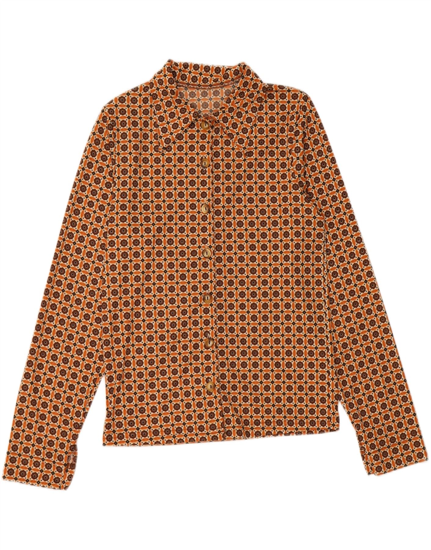 VINTAGE Womens Shirt Blouse UK 12 Medium Brown Floral Polyester