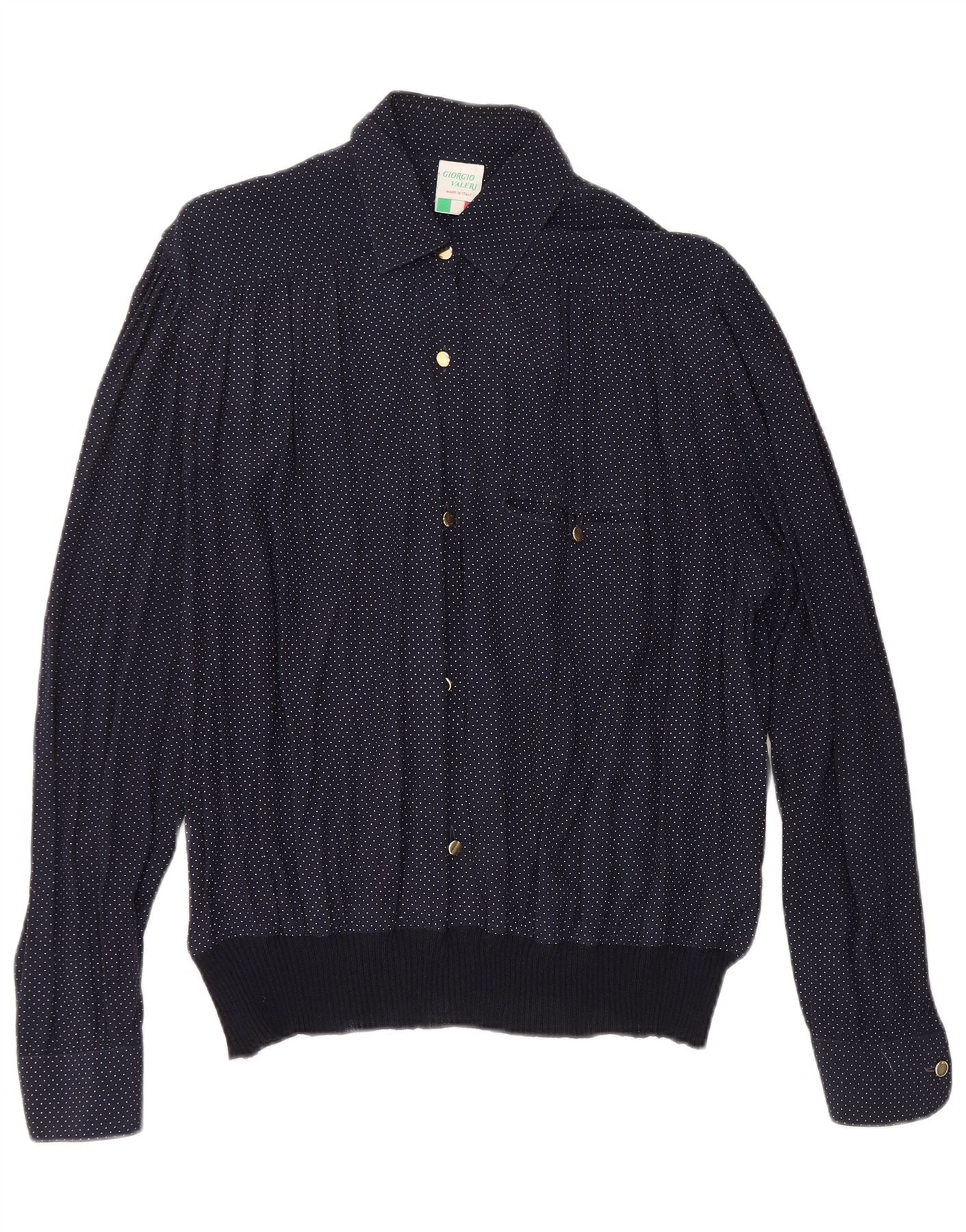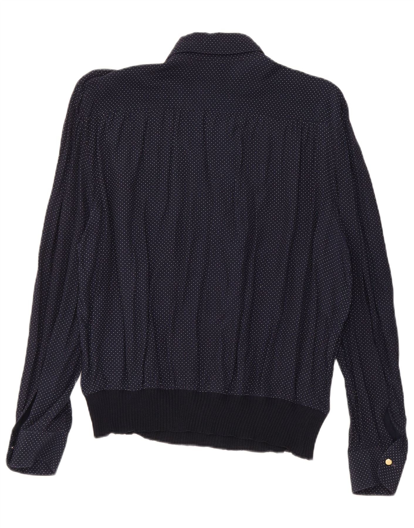 Bluză cămașă pentru femei VINTAGE UK 16 mare, albastru marin, viscoză cu pete