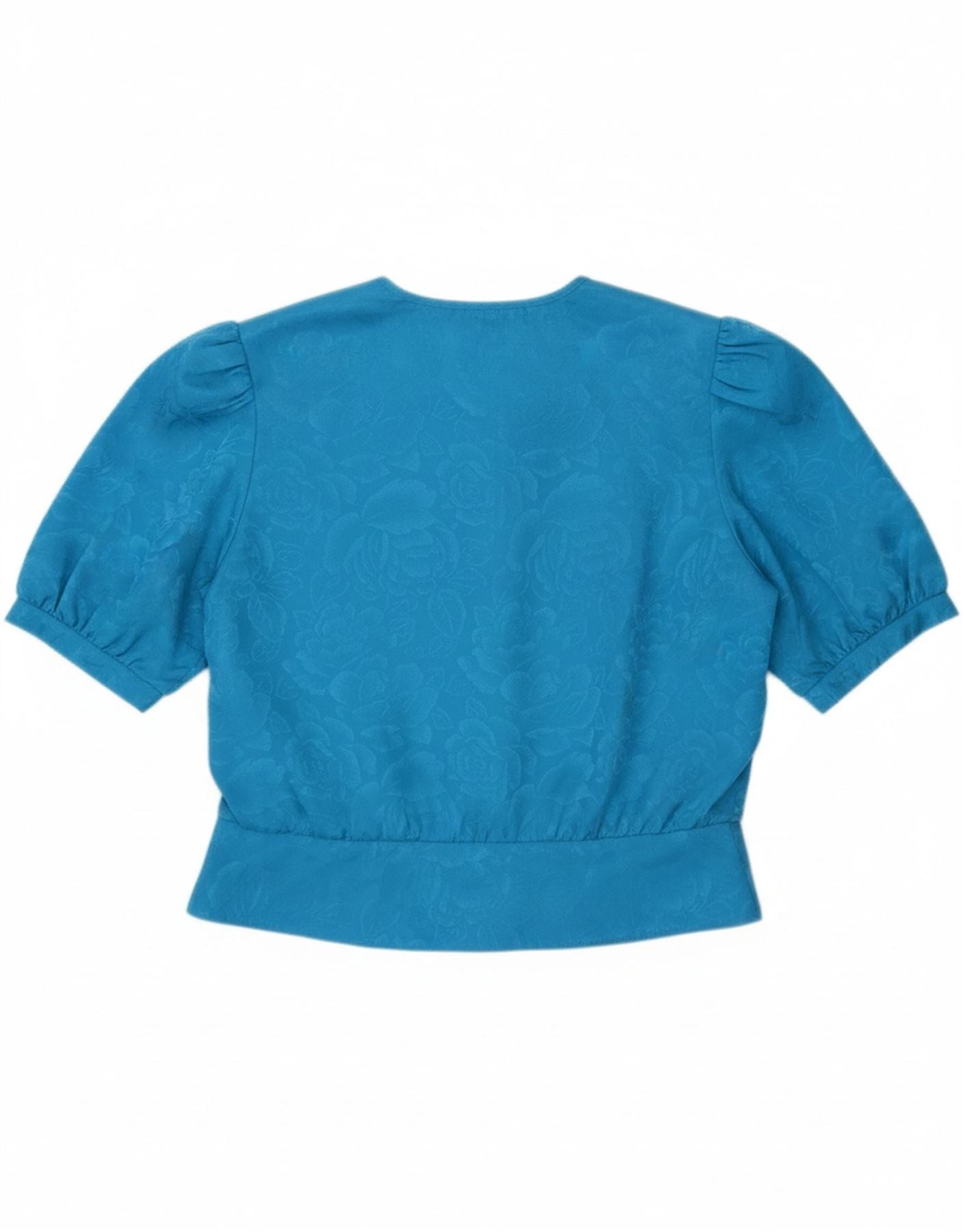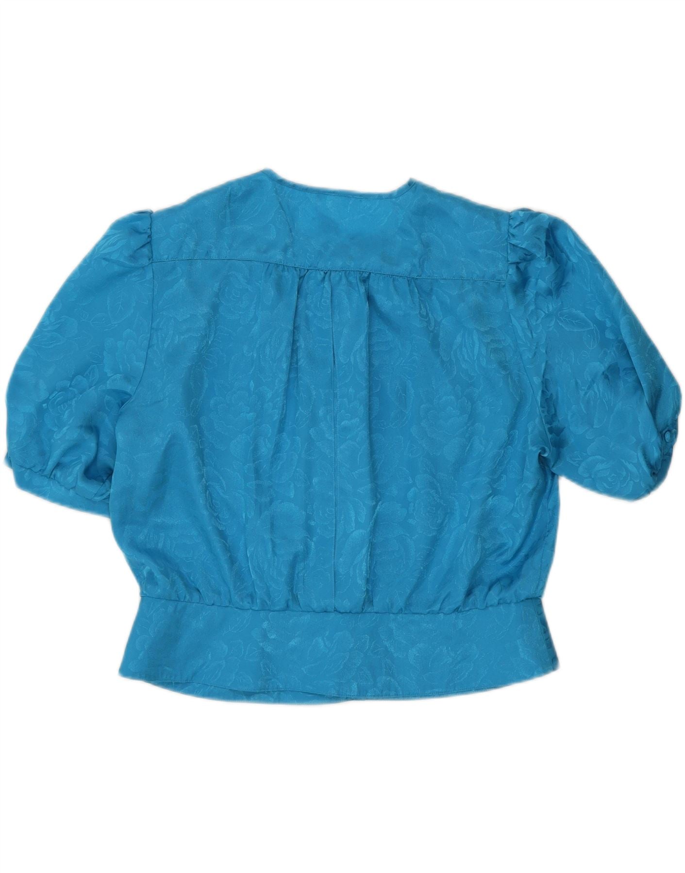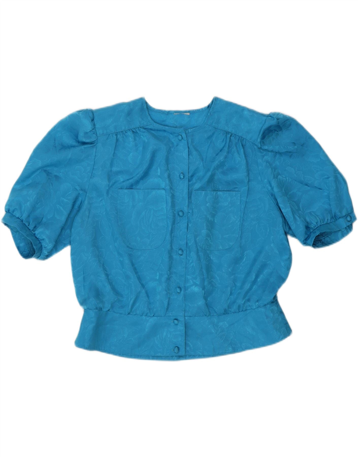 VINTAGE Womens Short Sleeve Shirt Blouse UK 18 XL Blue Floral