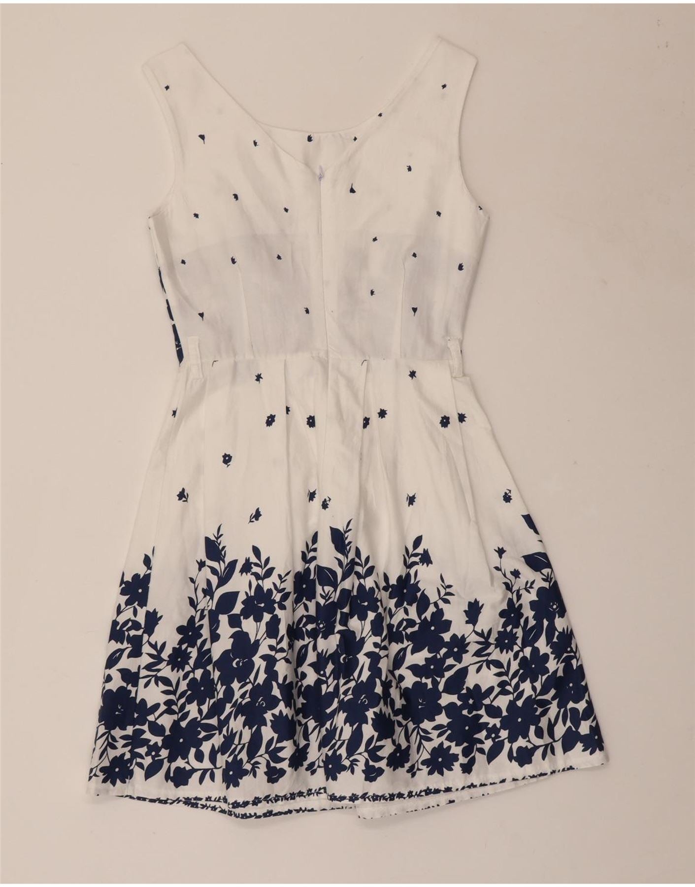 VINTAGE Rochie A-Line fără mâneci pentru femei UK 8 Bumbac Floral Alb Mic