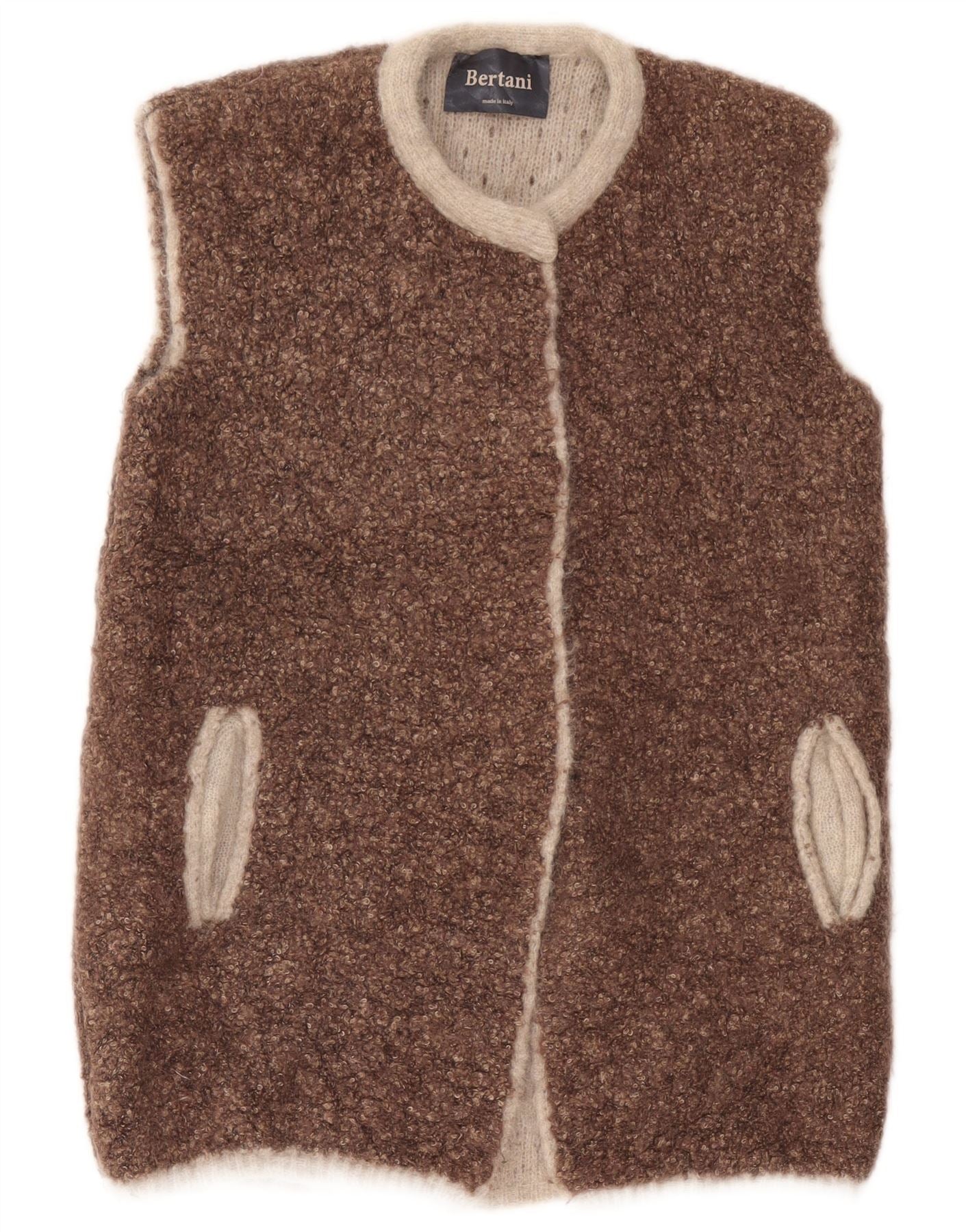 Pulover cardigan deschis fără mâneci vintage pentru femei UK 14 maro mediu