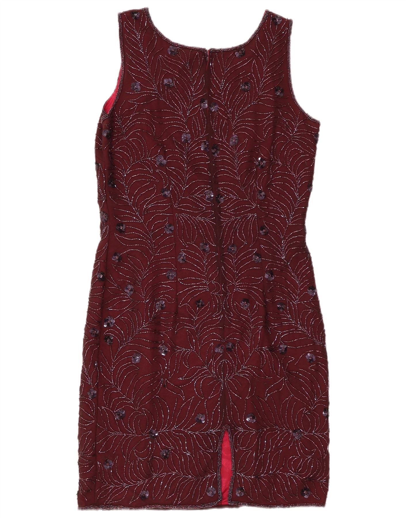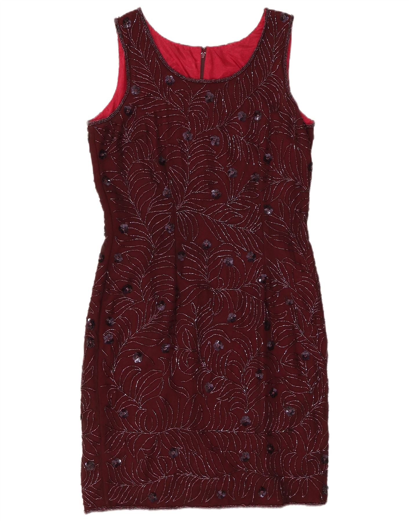 VINTAGE Rochie fără mâneci pentru femei UK 12 Medium Burgundy Floral