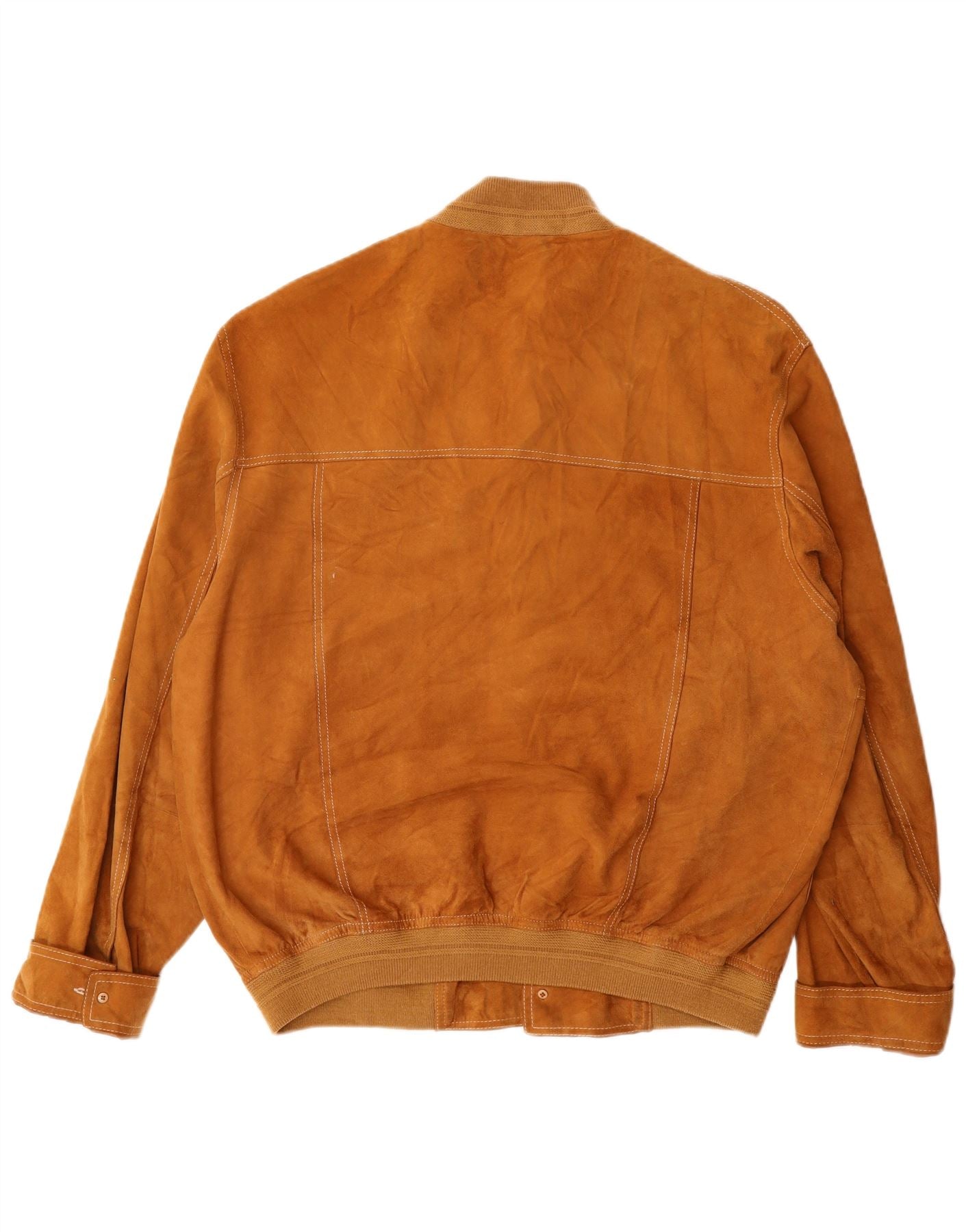 VINTAGE Womens Suede Bomber Jacket IT 58 5XL Brown Leather
