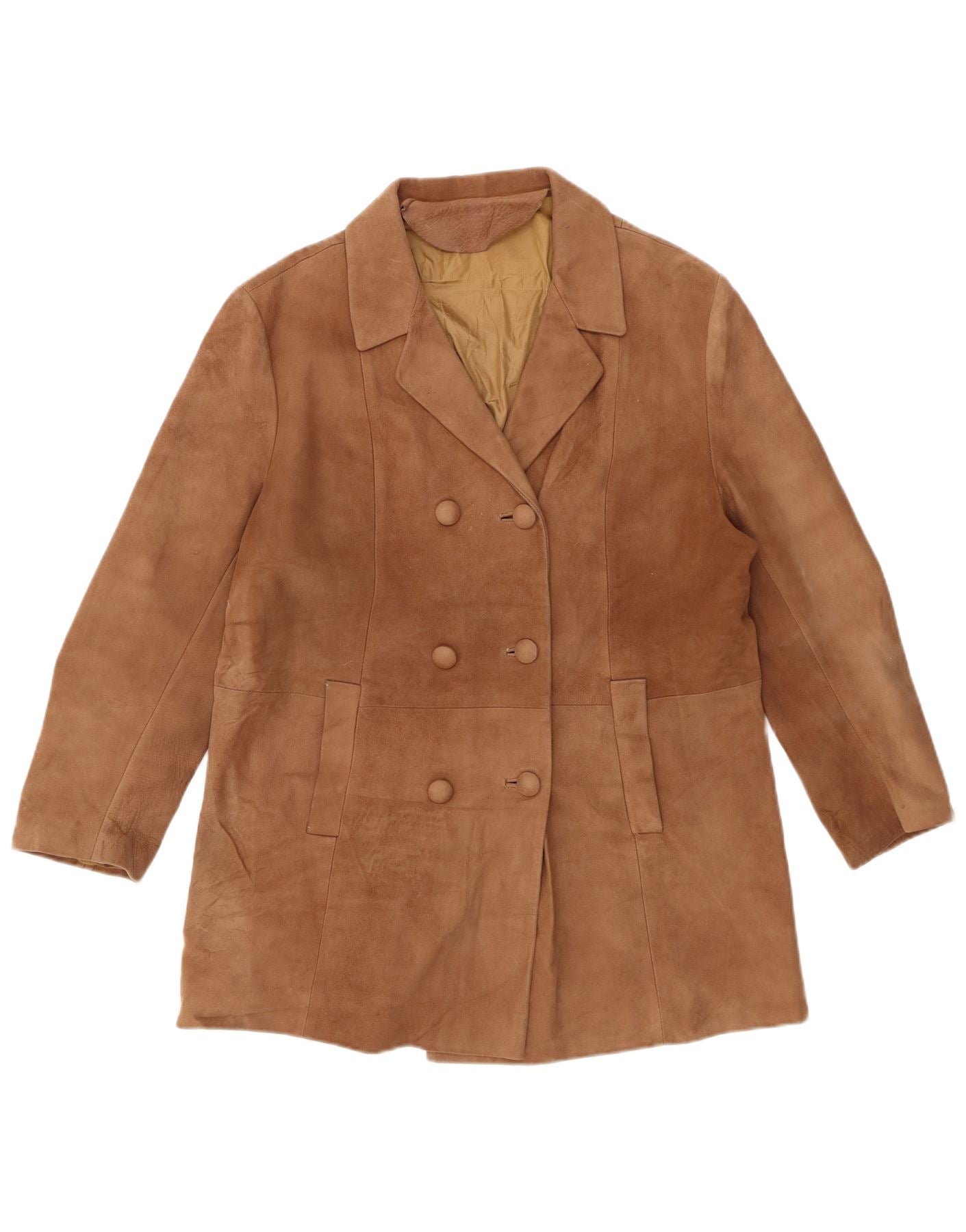 VINTAGE Palton pentru femei din piele intoarsa dublu piept EU 50 3XL piele maro
