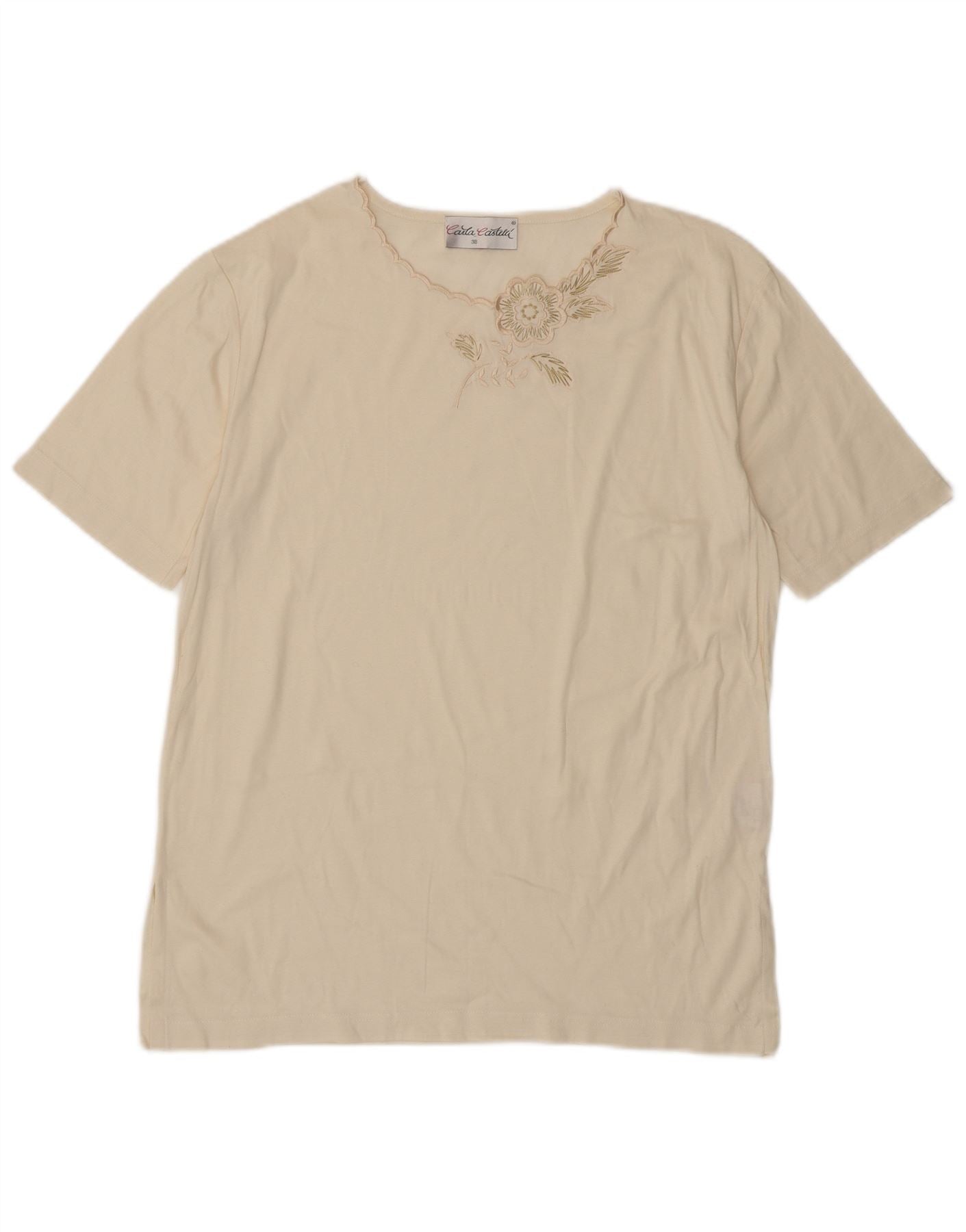 VINTAGE Tricou pentru femei Top EU 38 Medium Off White Floral Bumbac