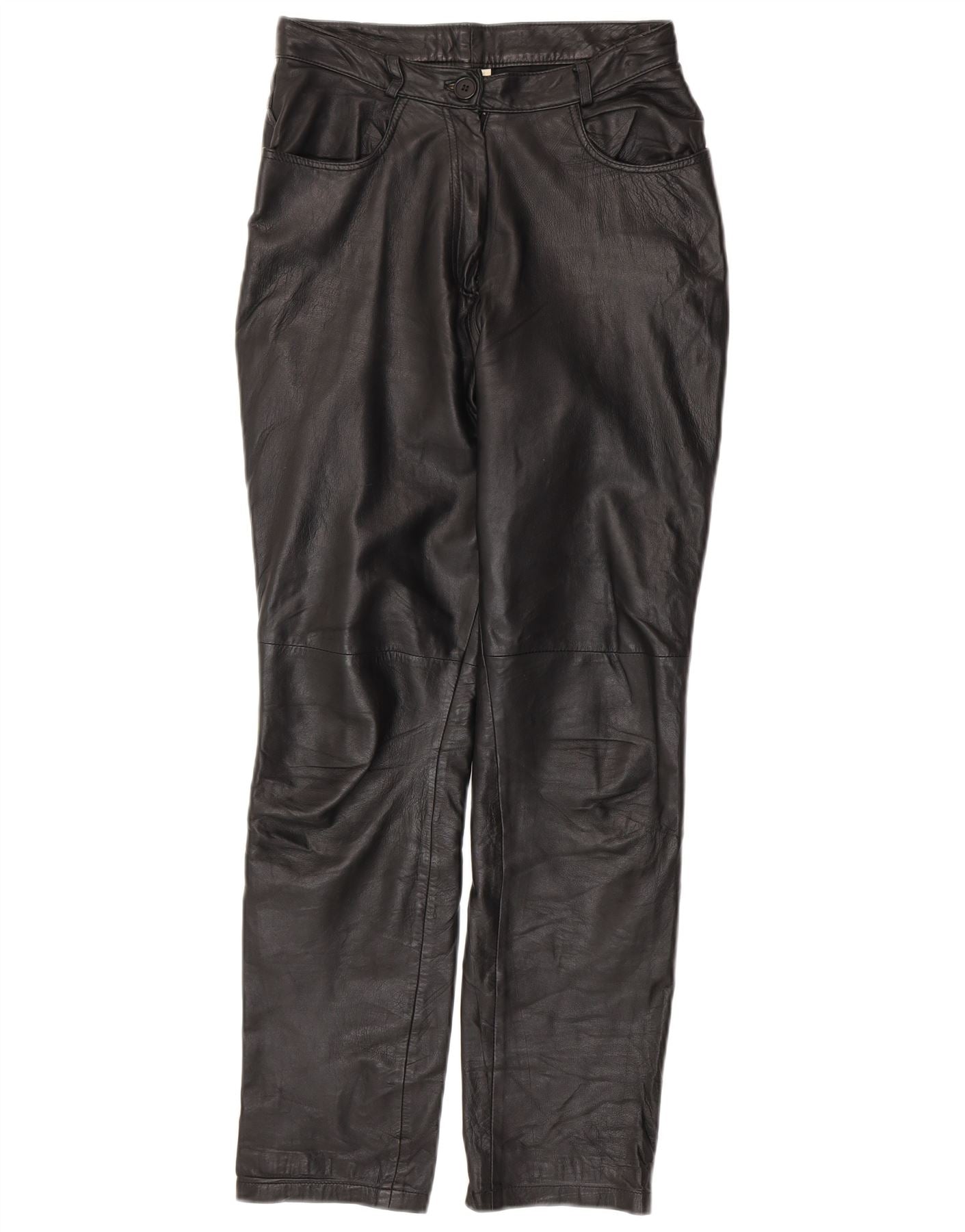 Pantaloni de piele conici pentru femei VINTAGE UK 10 Small W28 L30 Piele neagră