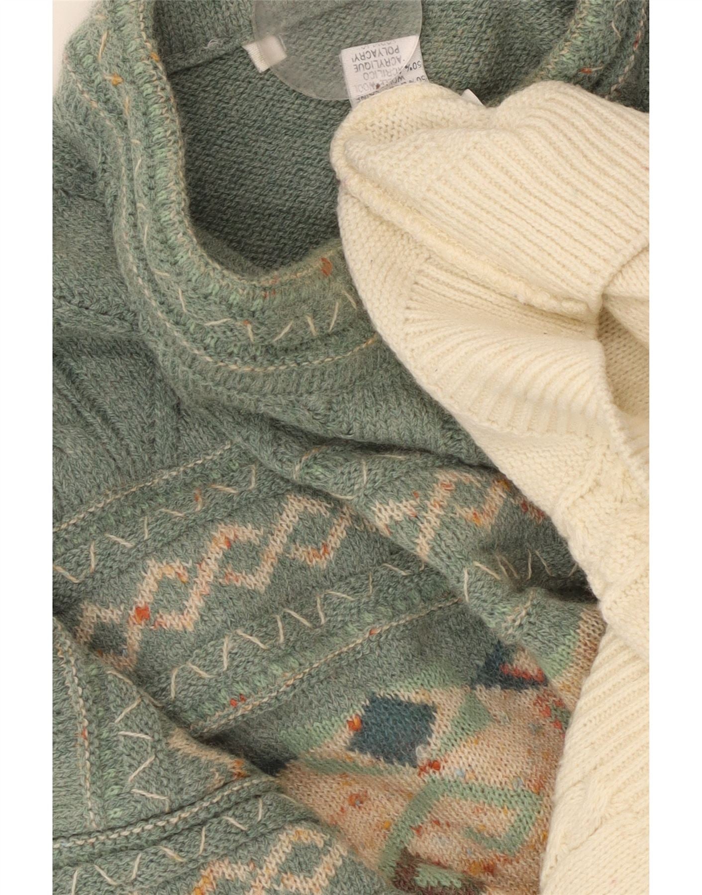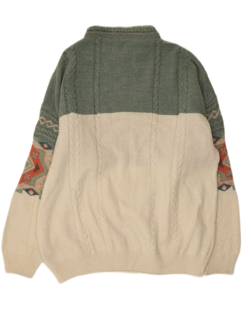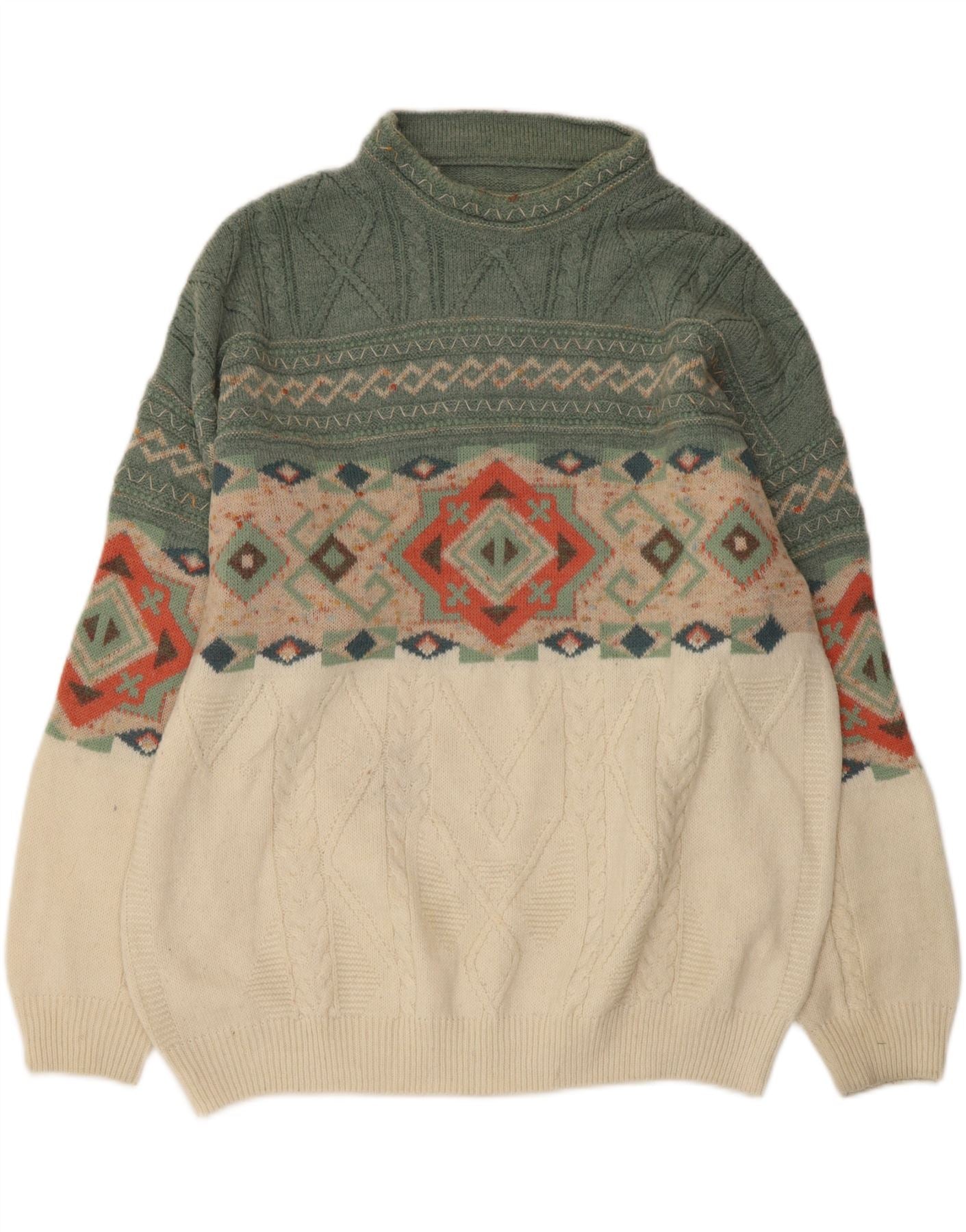 VINTAGE Pulover cu gât țestoasă pentru femei UK 18 XL Green Fair Isle Lână