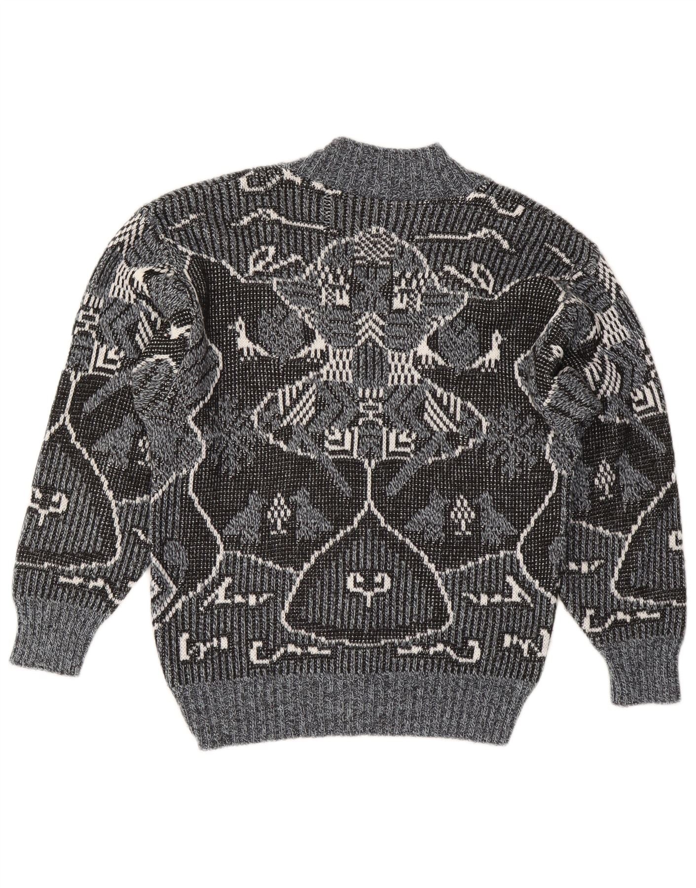 Pulover vintage pentru femei cu decolteu în V IT 48 XL Gri Fair Isle Poliacrilic