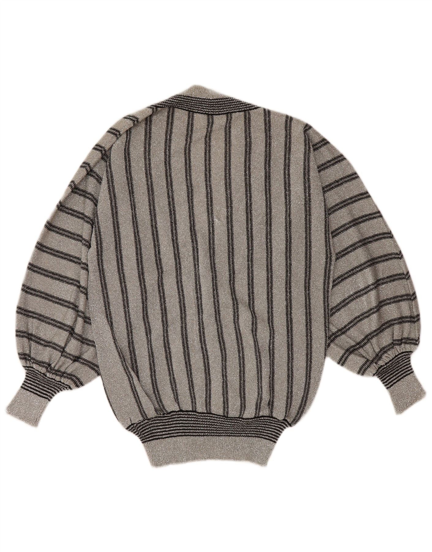 VINTAGE Pulover cu decolteu în V pentru femei UK 12 Gri mediu cu dungi sintetice