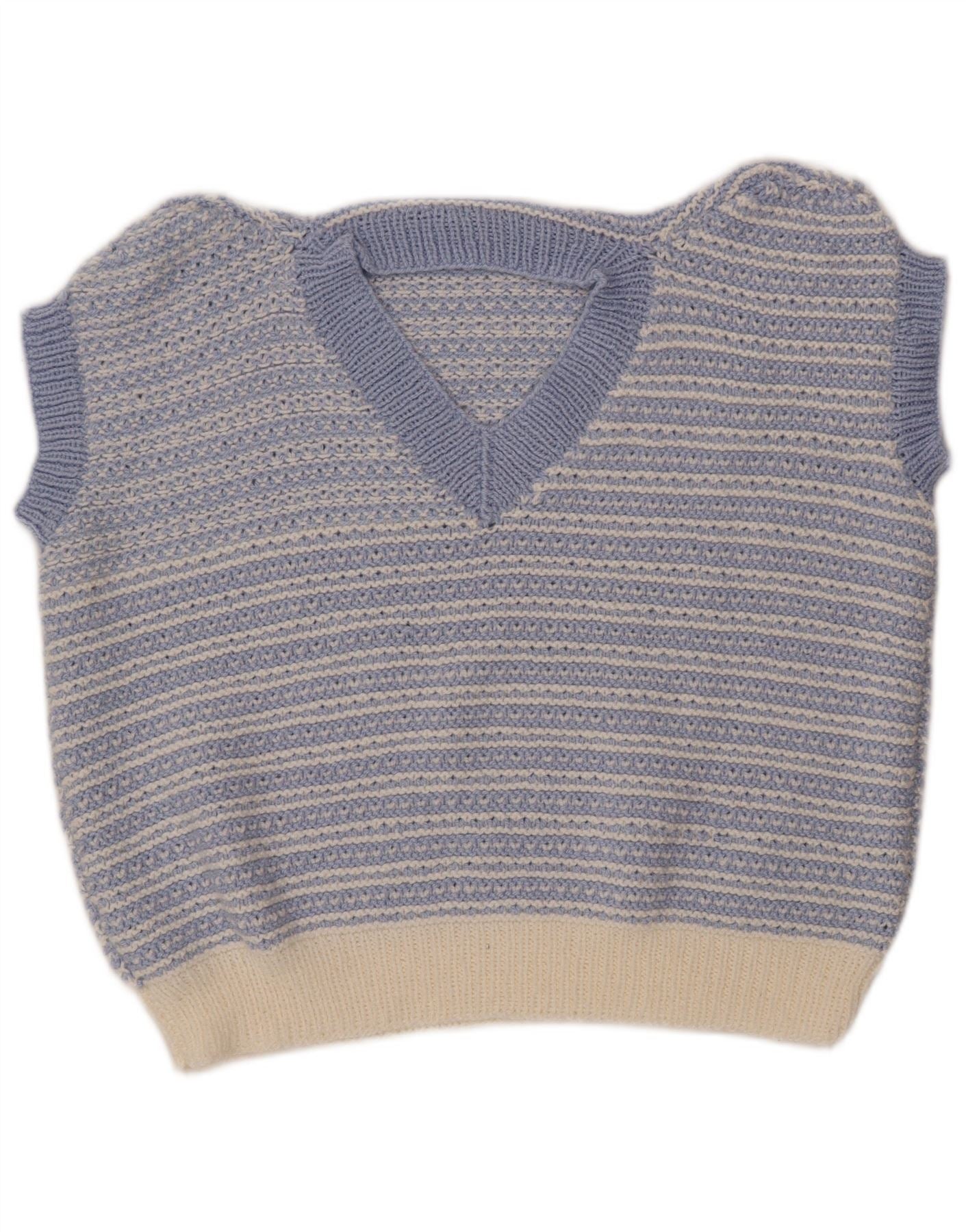 VINTAGE Vestă Tank Top pentru femei UK 18 XL Blue Striped
