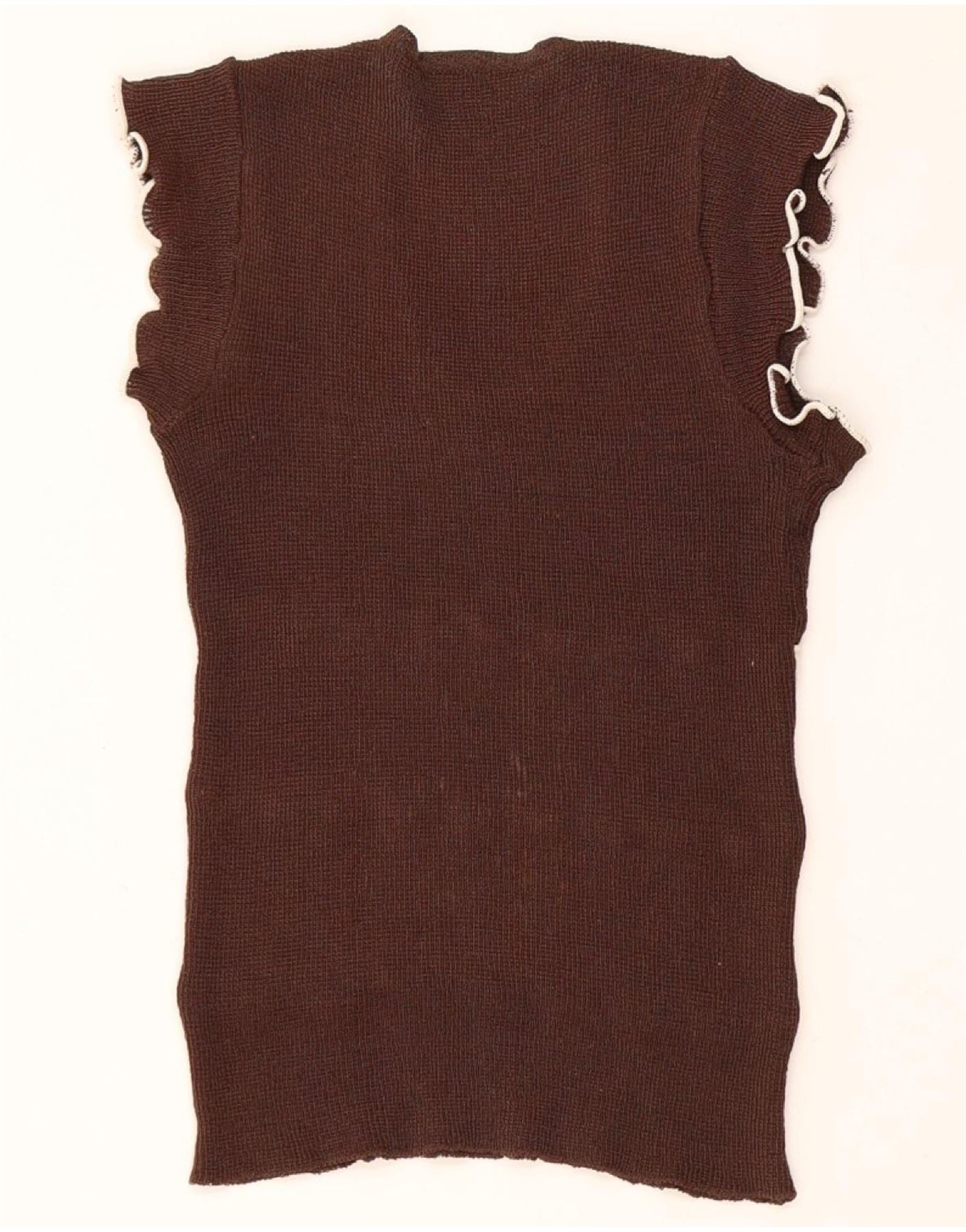 Vintage Womens Vest Tank Top UK 8 Small Brown Colorblock