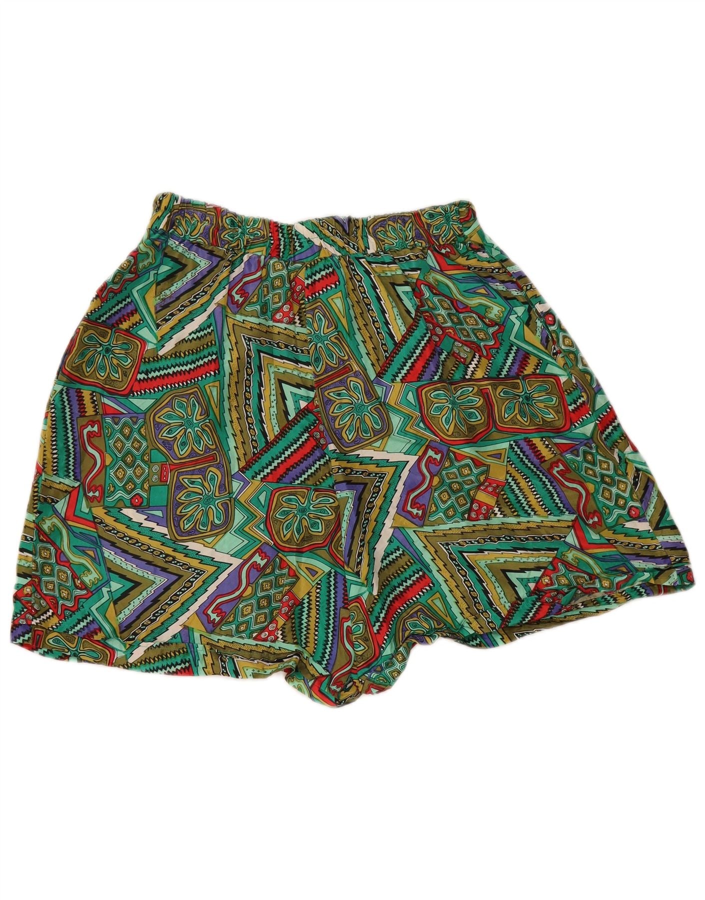 Pantaloni scurți casual de damă vintage cu picior lat, mediu W28, mătase verde, mozaic