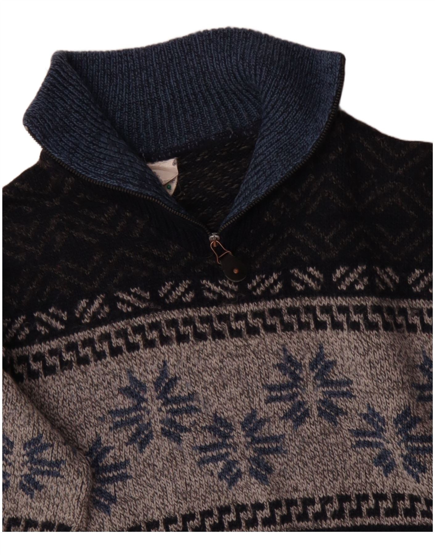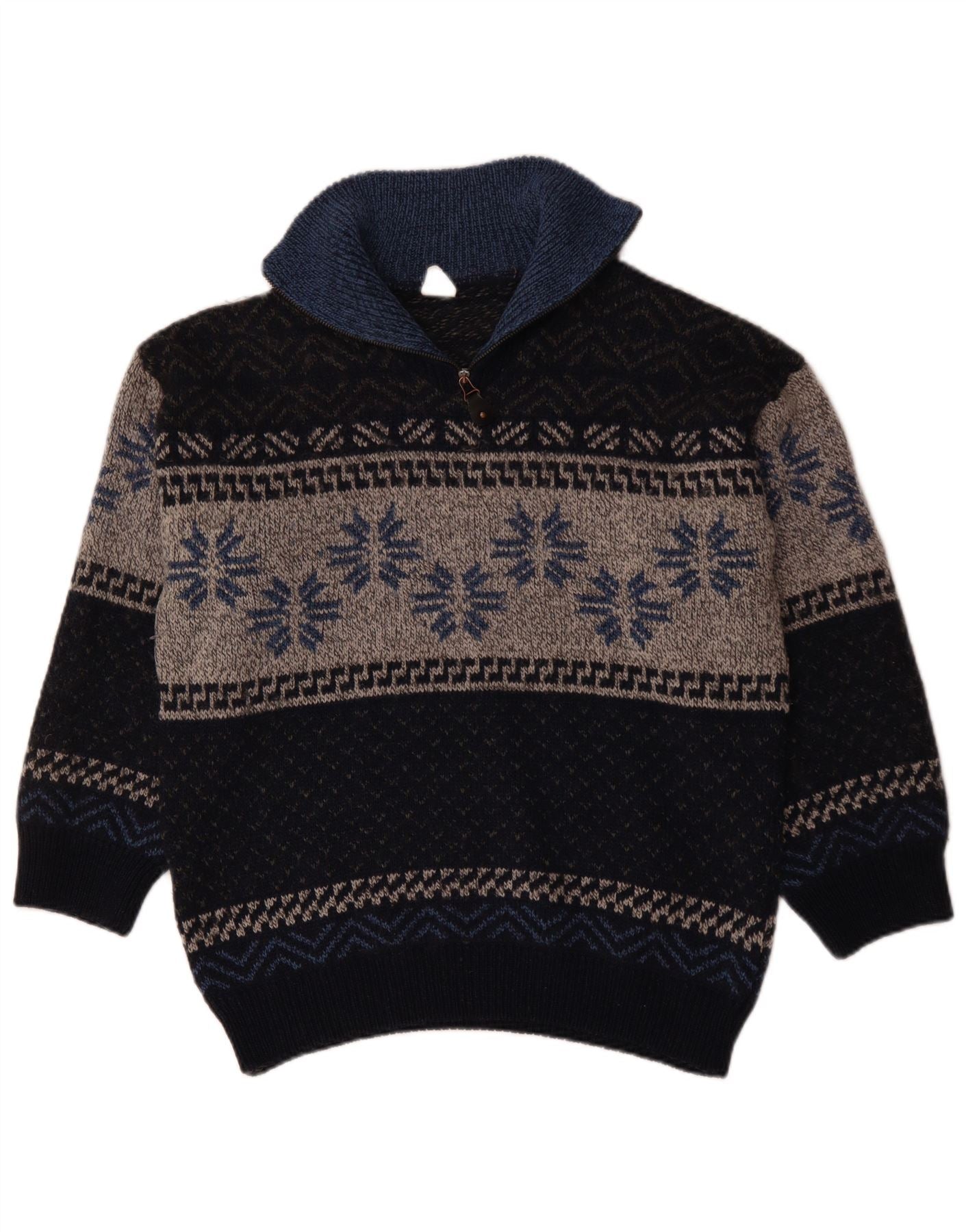 Pulover pentru femei VINTAGE cu fermoar și gât UK 18 XL bleumarin Fair Isle