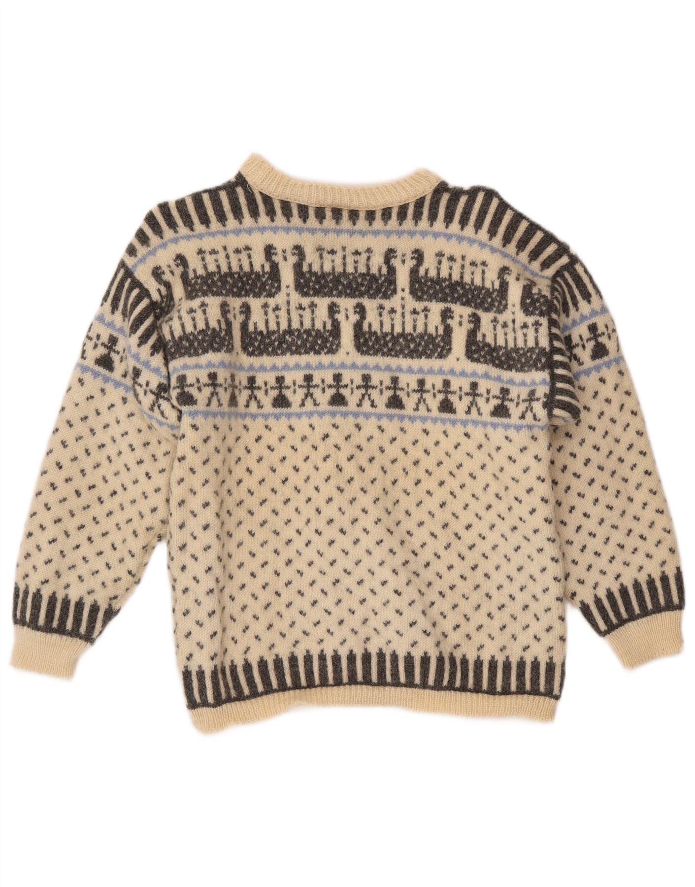 Pulover VOSS pentru femei cu gât de barcă UK 10 mic din lână Fair Isle alb