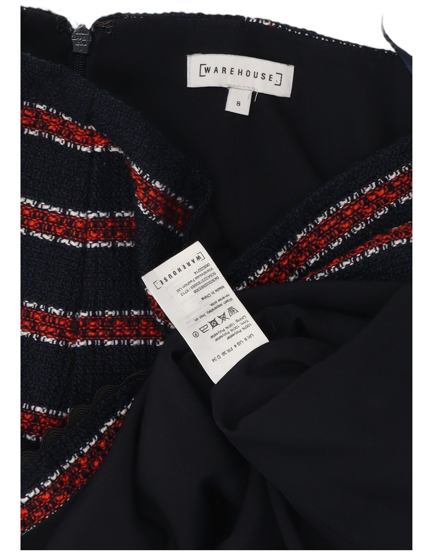 Fusta mini pentru femei WAREHOUSE UK 8 Small W26 Bleumarin Poliester cu dungi