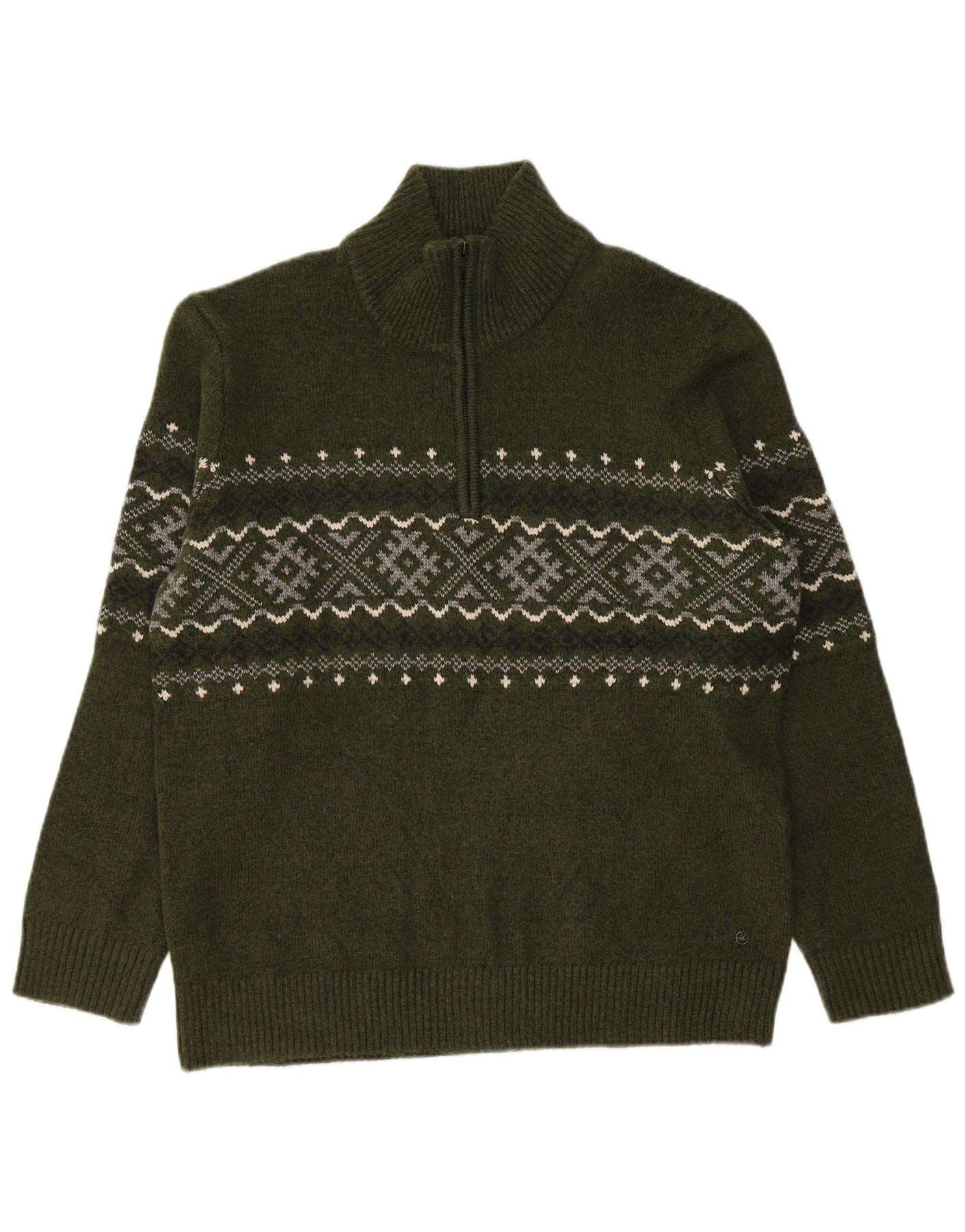 WE Pulover pentru bărbați cu fermoar și gât XL Kaki Lână Fair Isle
