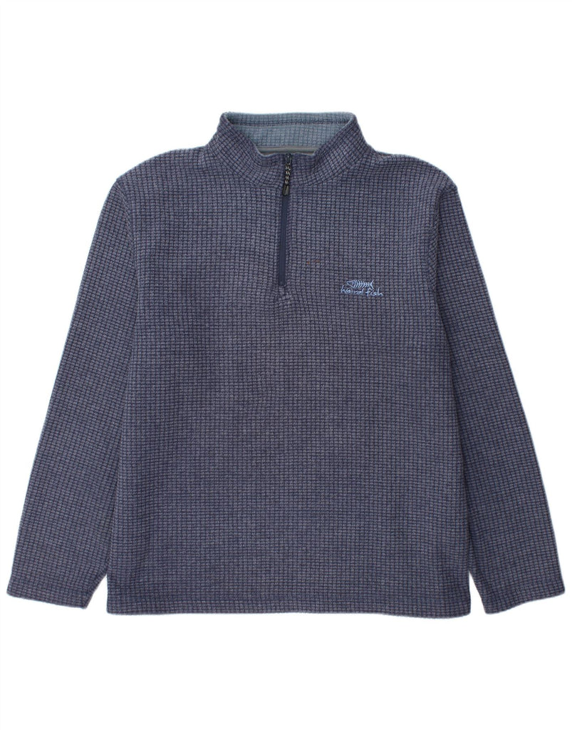 WEIRD FISH Mens Zip Neck Sweatshirt Jumper Large Navy Blue Polyester