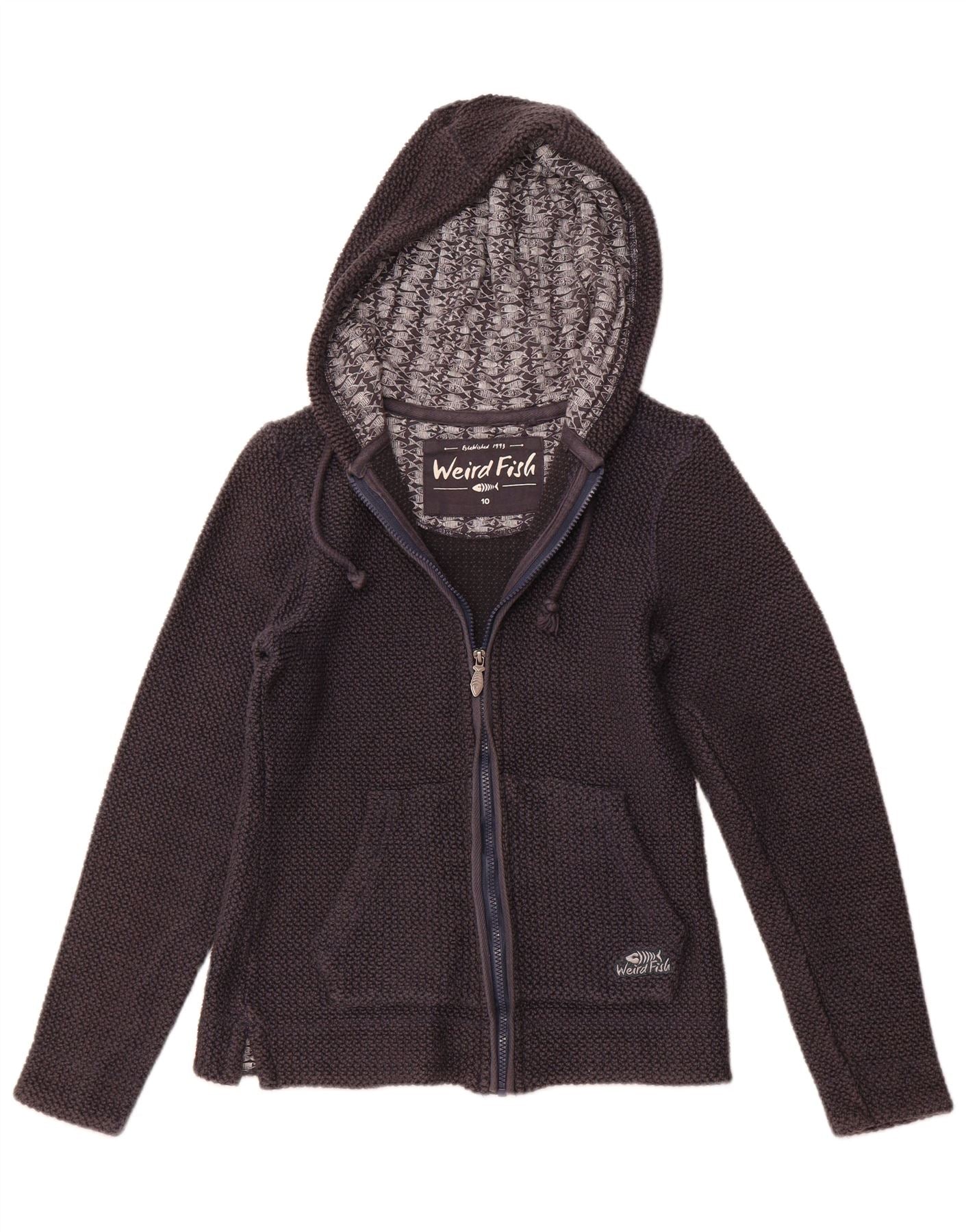 WEIRD FISH Pulover cu glugă cu fermoar pentru femei UK 10 Bumbac bleumarin mic