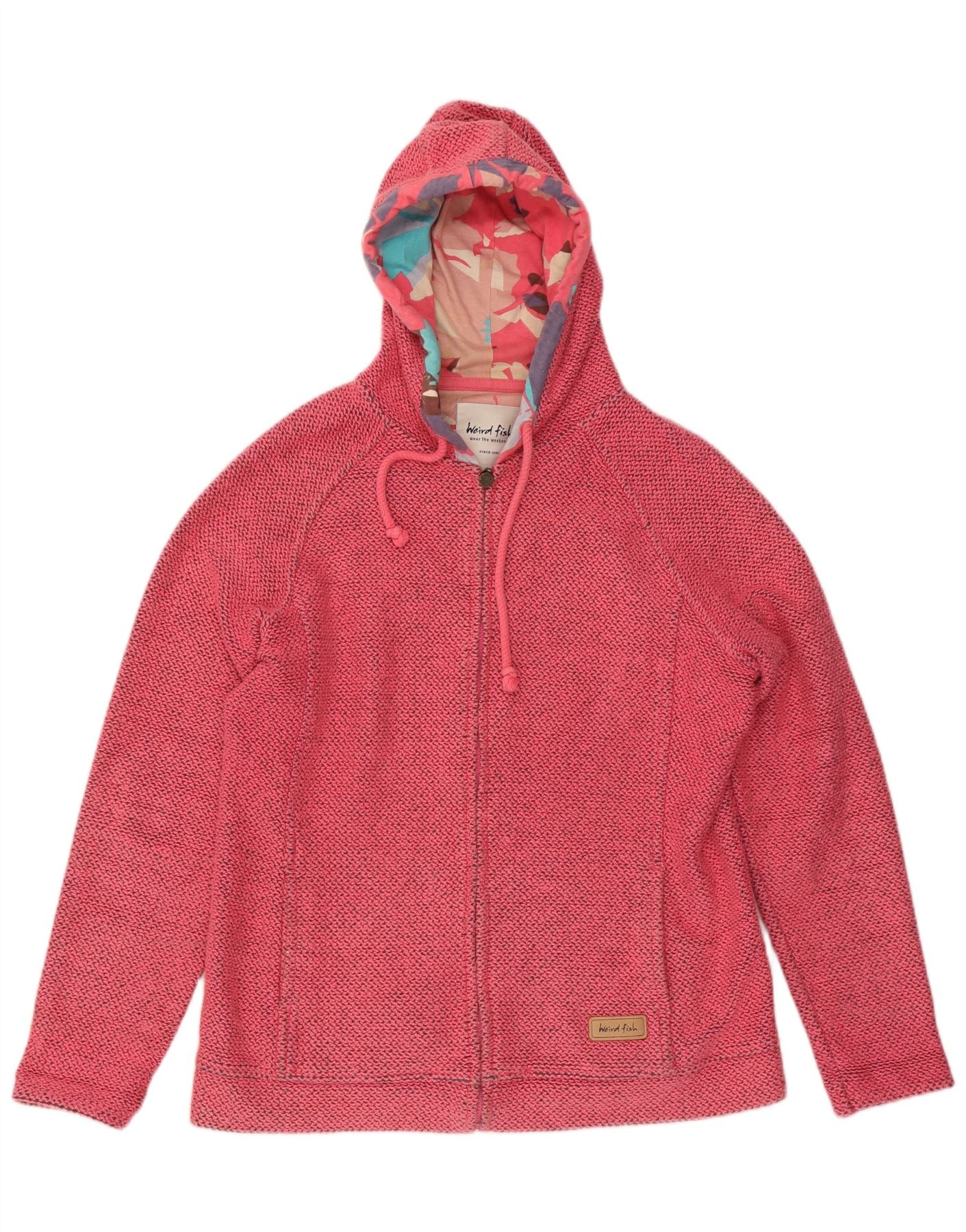 WEIRD FISH Pulover cu capota cu fermoar pentru femei UK 16 Bumbac roz mare