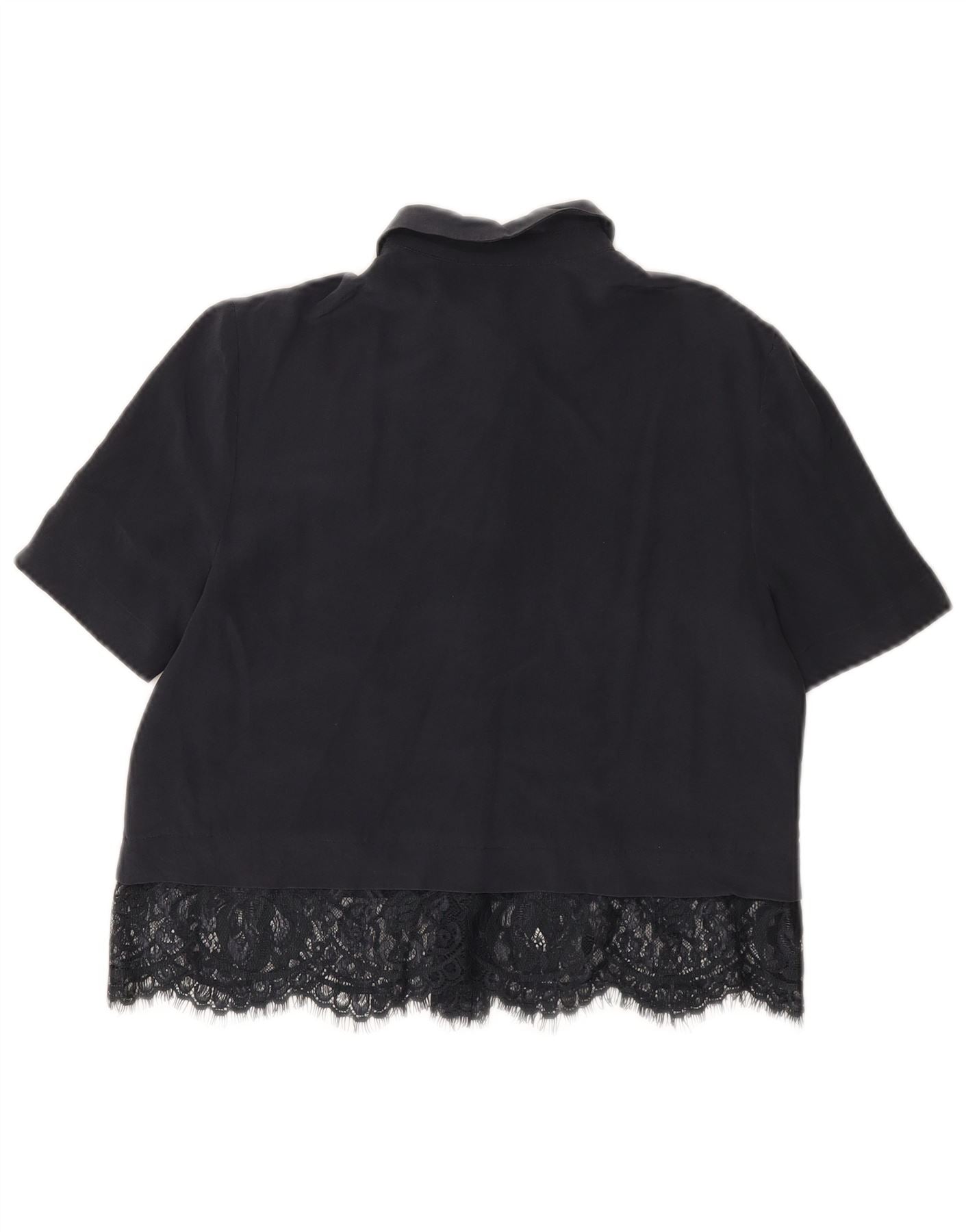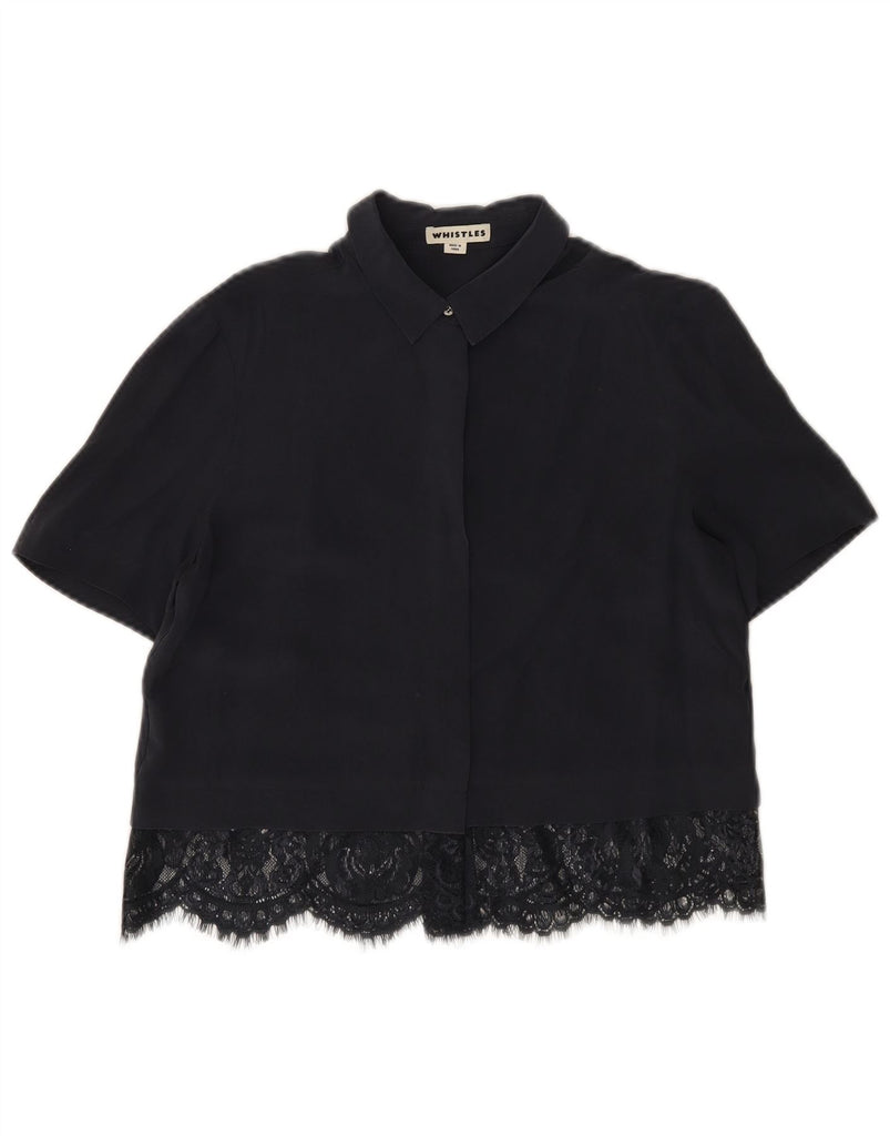 WHISTLES Womens Short Sleeve Shirt UK 8 Small Navy Blue Silk