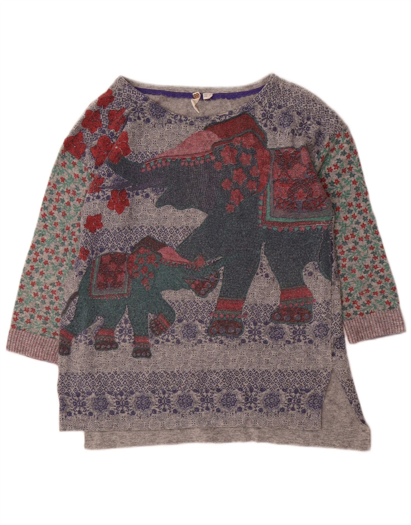 WHITE STUFF Pulover cu decolteu cu barcă cu grafică pentru femei UK 10 Small Gri